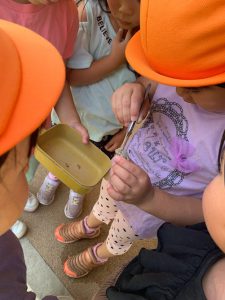 「ハチの子って見たことある?先生、このハチの子出したことあるんだよ!」「えーーーーー!!!」大きな声に「どうしたの??」と子どもたちが集まってきました。「ハチの子って何?」「ハチの赤ちゃんだよ」「あっ食べたことある!」それはすごいい経験だね!・・・・・そこから、ハチの子出しが始まりました。