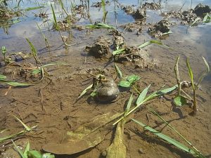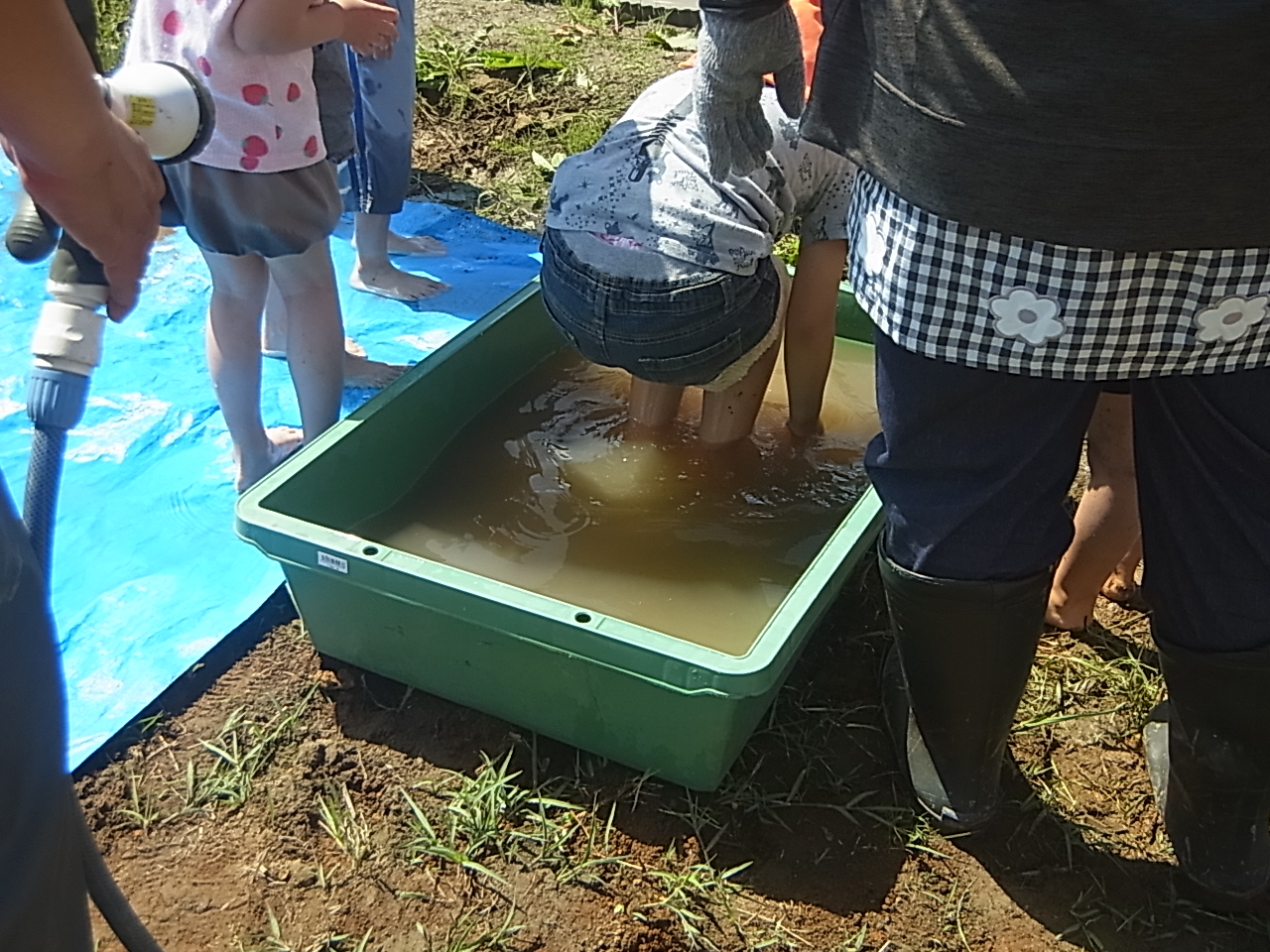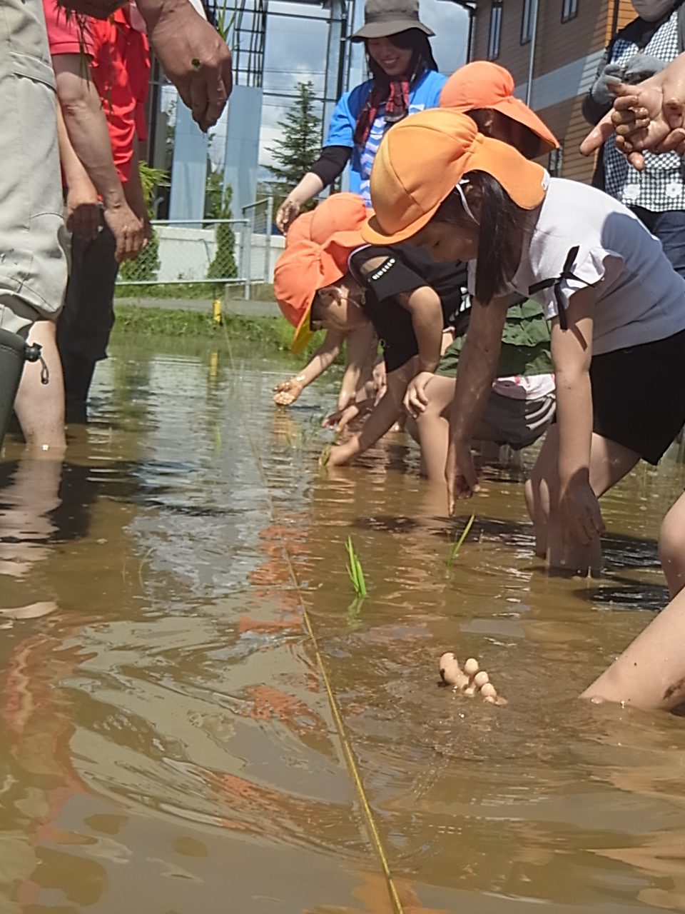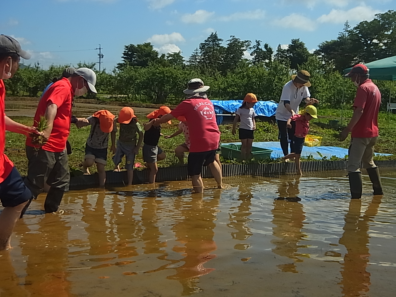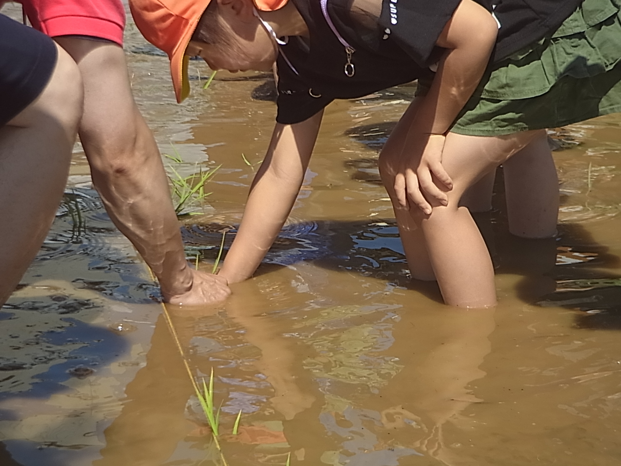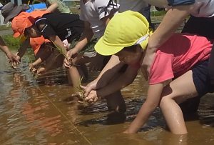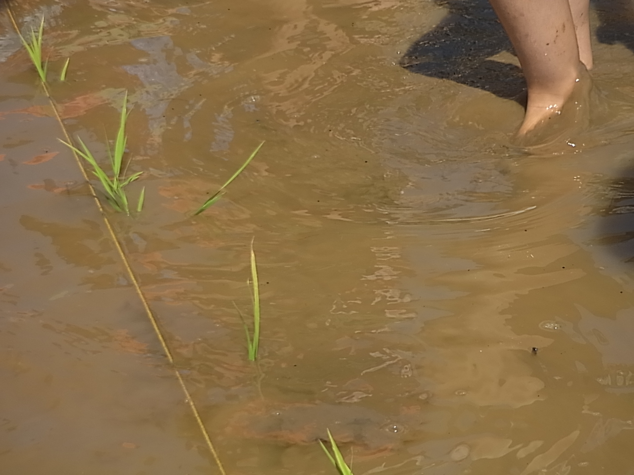 太陽がきらめいて、今日の田植え体験はおしまいです。タニシ?もちろん持って帰っていましたねぇ。次はどんなことがあるかな~。