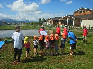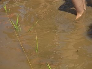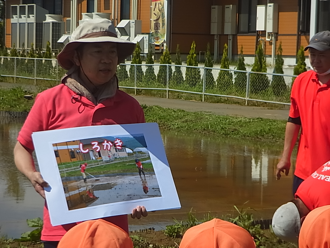 今日は仮設園舎がすぐそこに見えるミールさんの田んぼにやってきました。