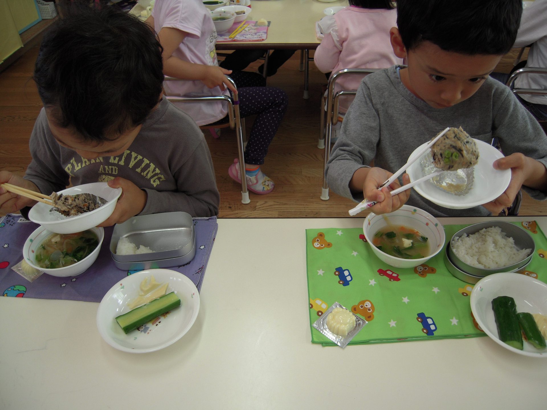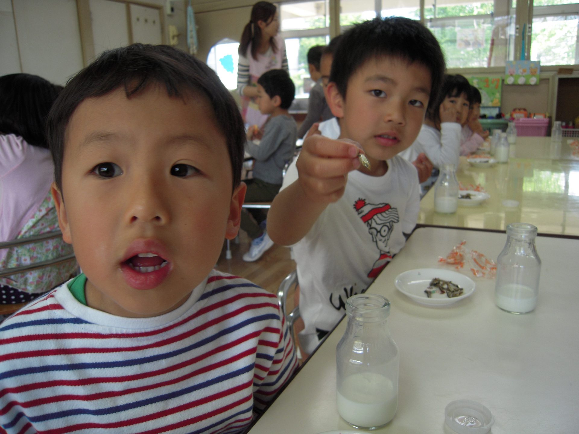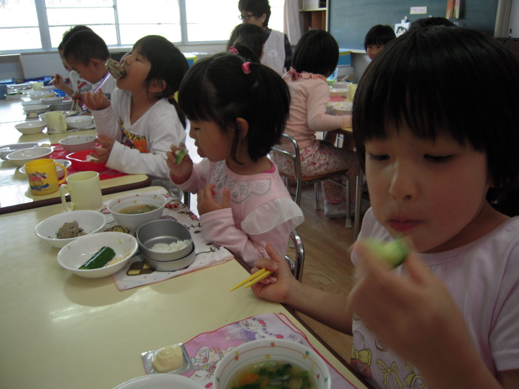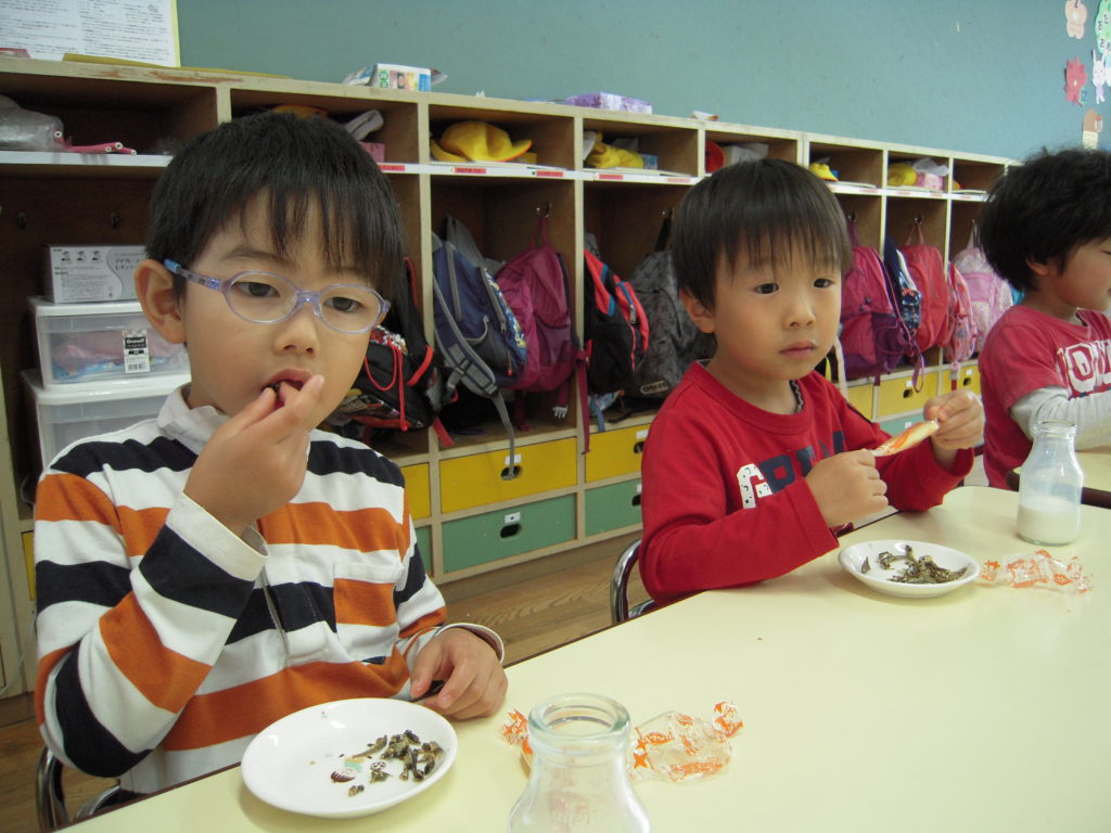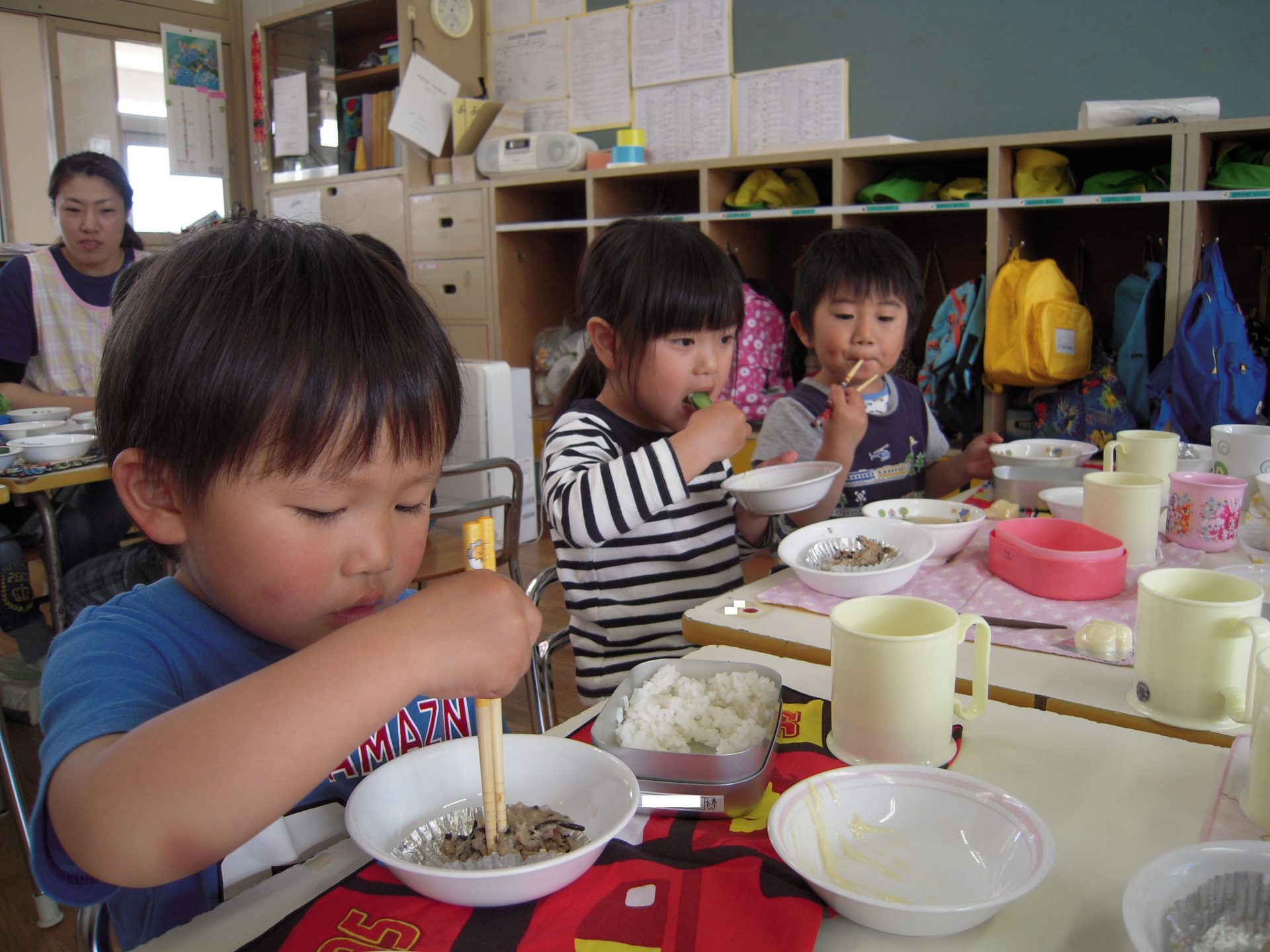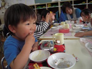と、年長児は魚の部位による味の違いを感じながら食べていました。