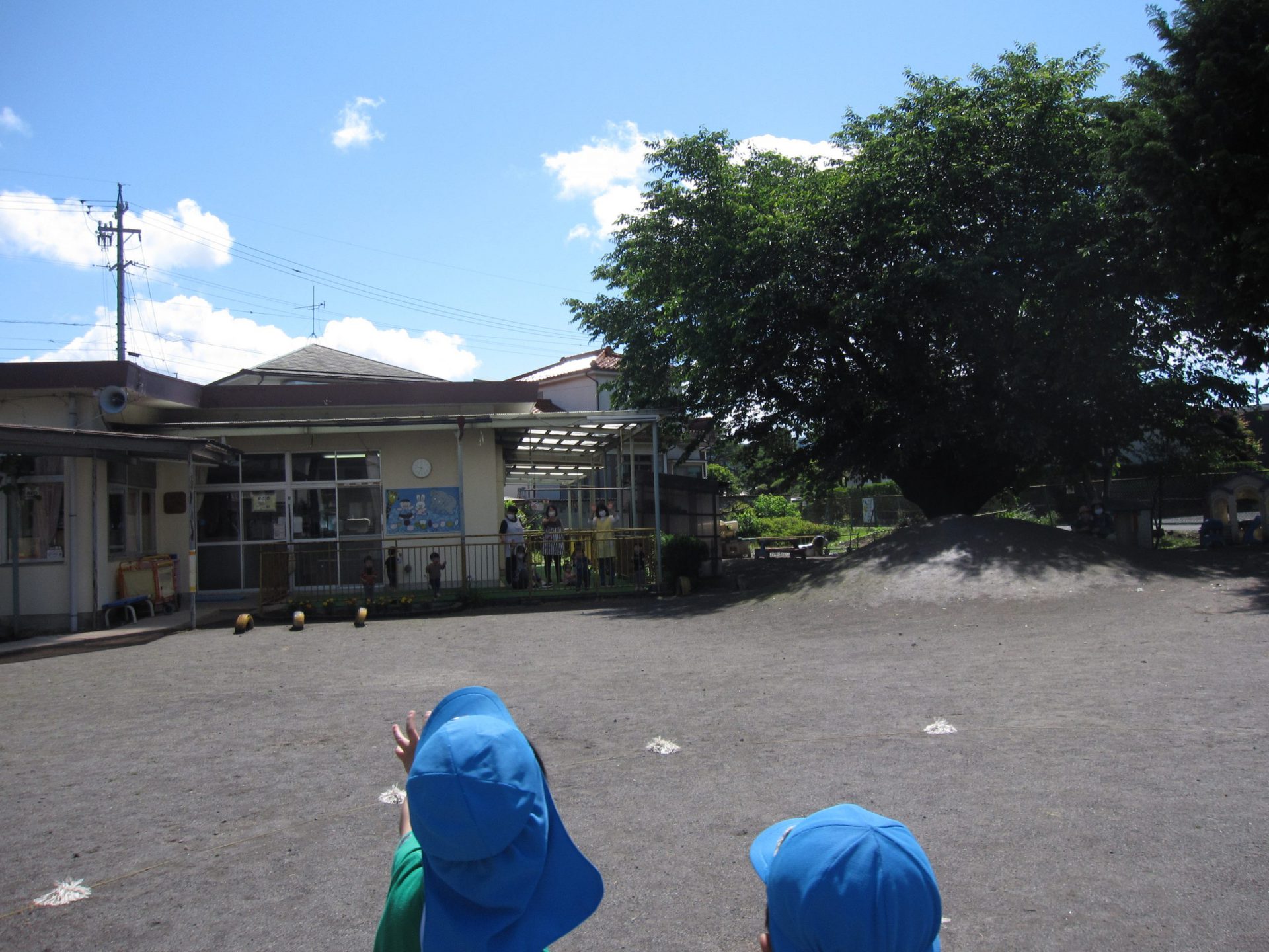 いざ、出発!!めだか組さん(01歳児)と先生たちが「いってらっしゃーい」と手を振り見送ってくれました。