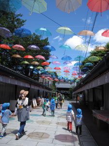 その後は、近くのぴんころ地蔵さんに寄りお参りしました。6月に入り参道は、鯉のぼりから、カラフルな☂かさに代わっていました。