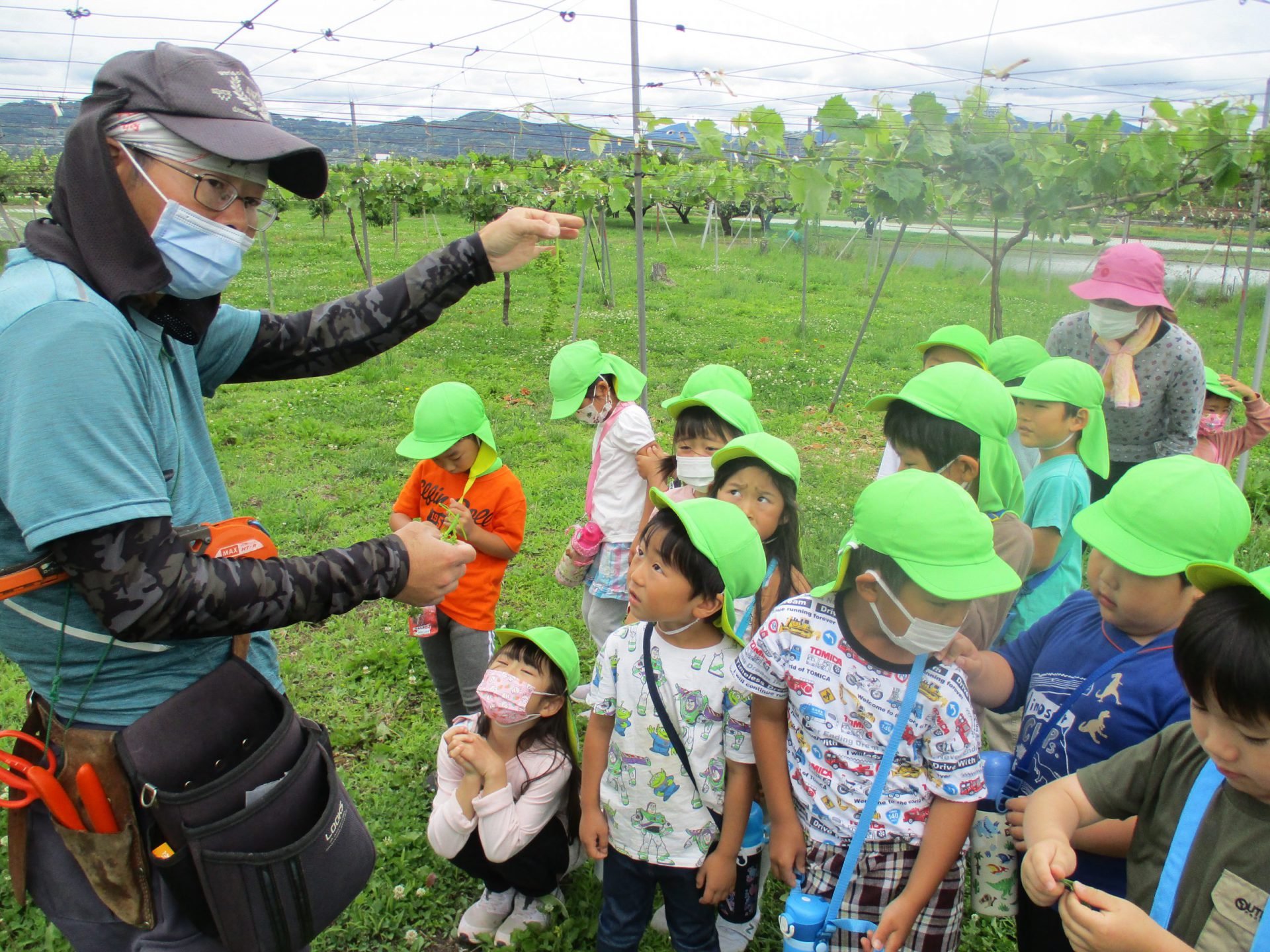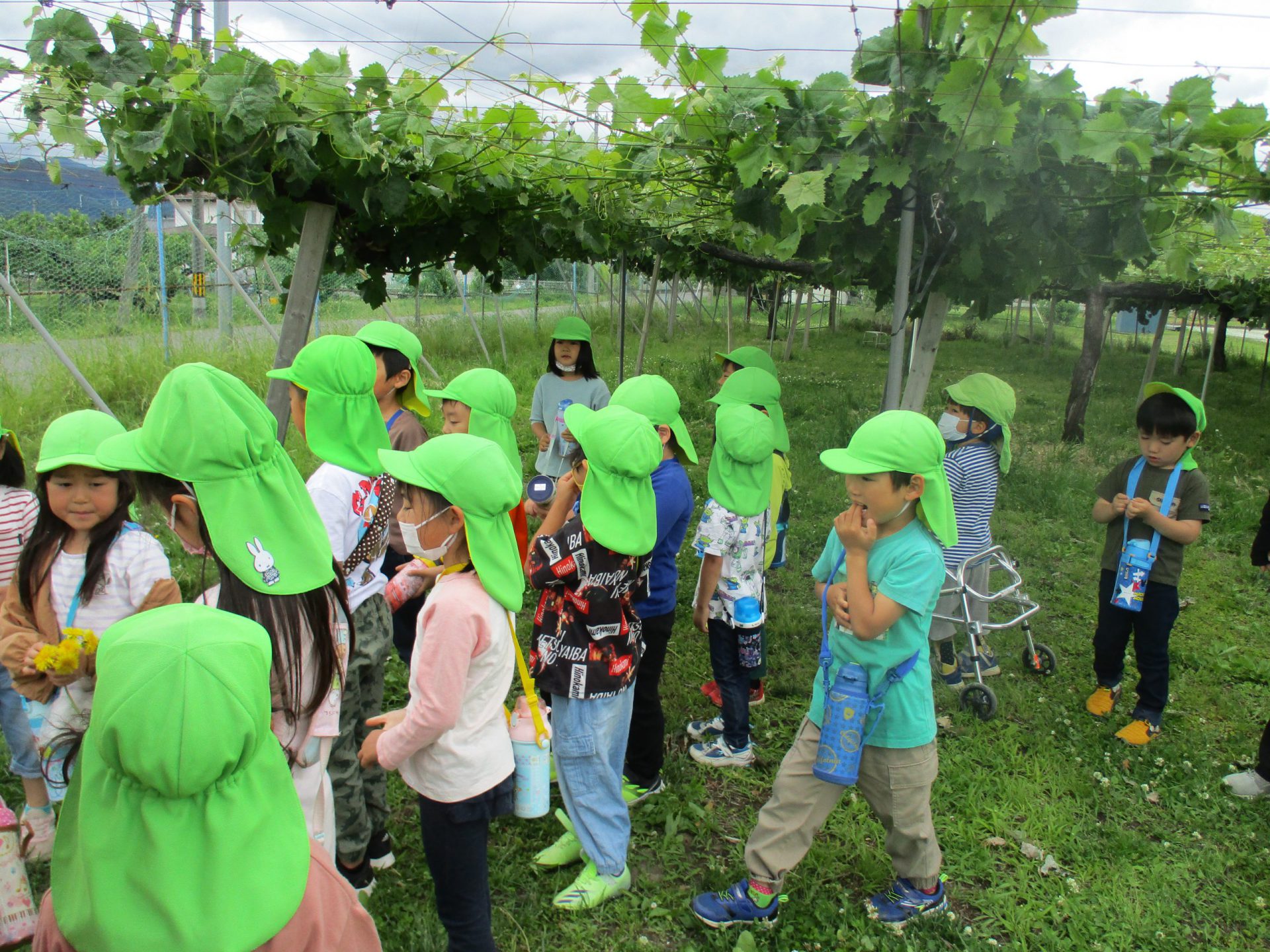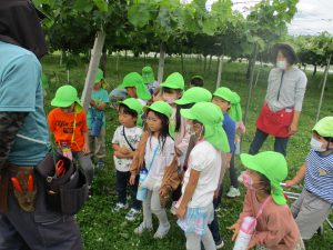 保育園の近くにあるぶどう畑の方に、お誘いいただいて、ぶどう畑にお邪魔しました。