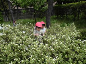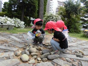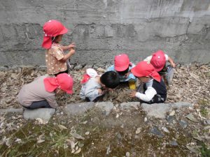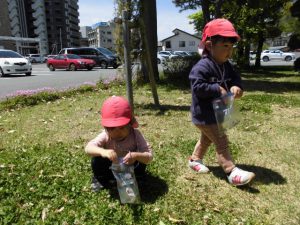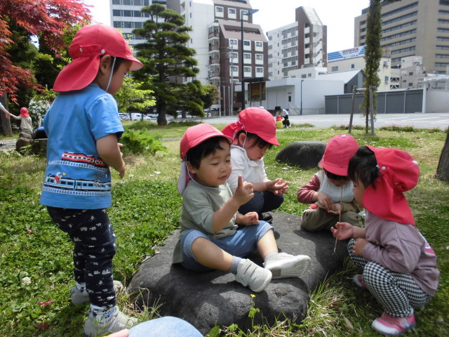 たくさんお散歩に出かけ園庭と同じくらい馴染みのある広場。すっかり虫のお家も覚えてしまいました。