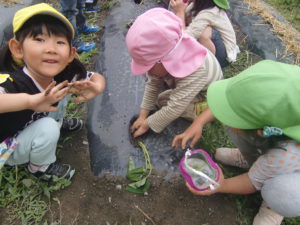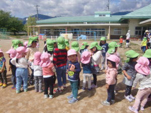 まずは年長児に植え方を知らせ、年下のこども達に教えてあげられるようにしました。異年齢の関わりの中で「教える」「教わる」というこども達の姿を大事にしていきたいと思いました。成長を楽しみながら、大事に育てていく気持ちが持てるようにしていきたいと思います。「枯らさないためにはどうしたらいいか」一緒に考えたり、伝えたりしながら水くれができるようにしていきたいと思います。