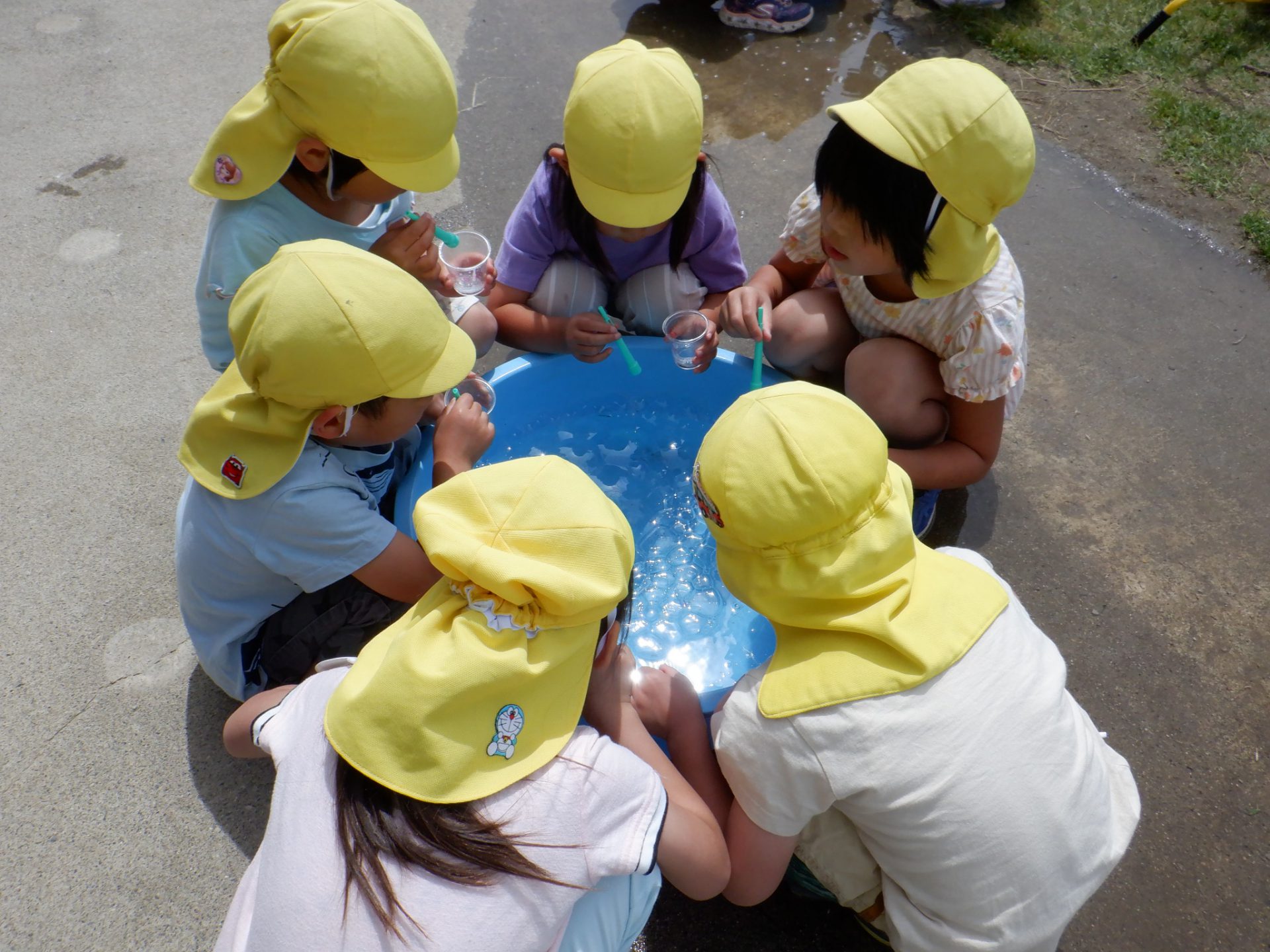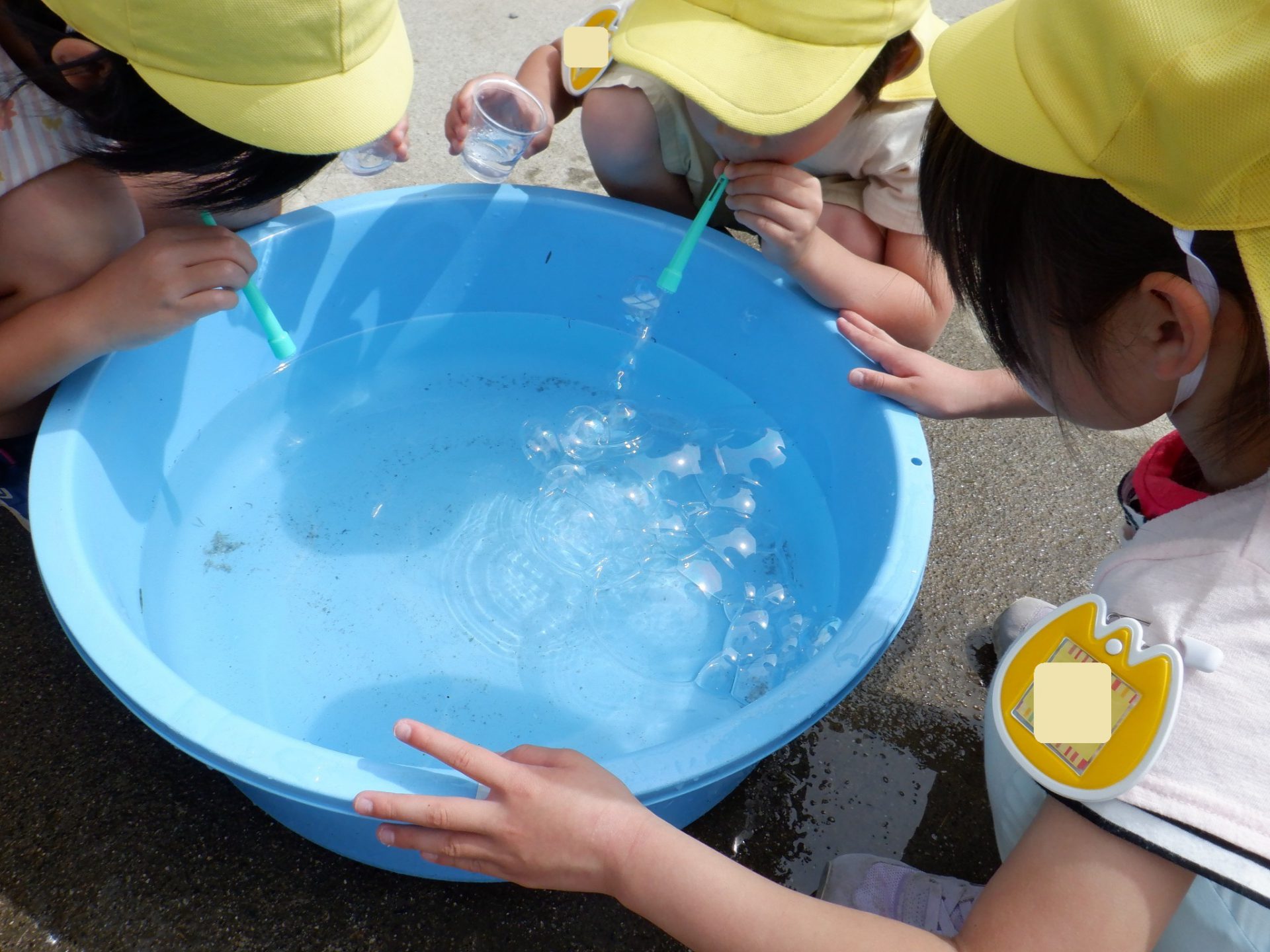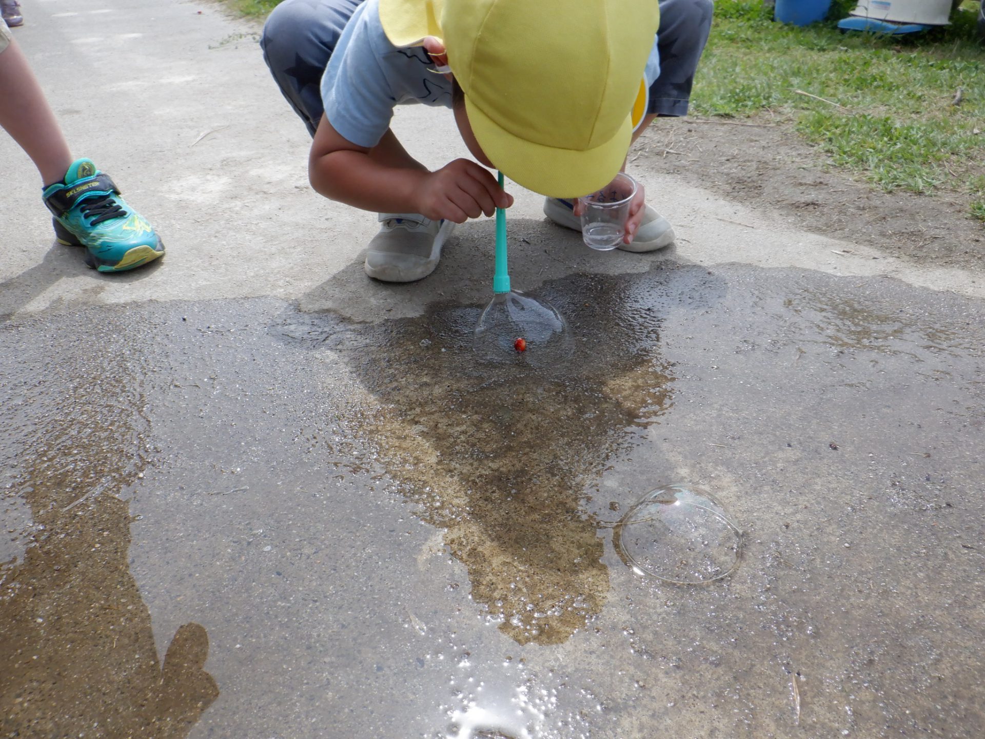 「しゃぼん玉って水に浮くんだ〜」 「知らなかった!」