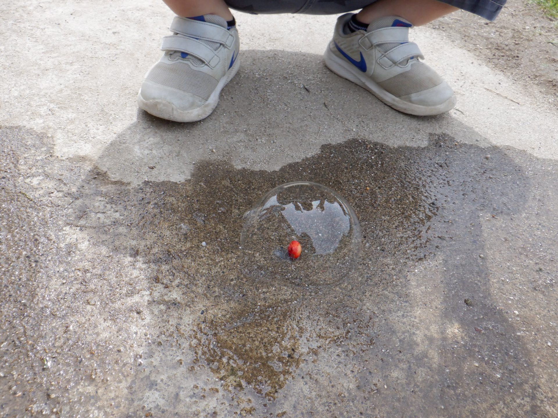 「おっ、実が落ちてるぞ。しゃぼん玉くっつけたらどうなるかな・・・」