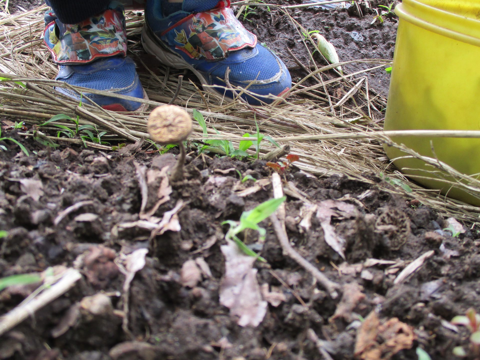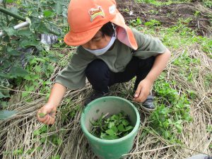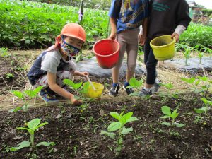 少しずつ少しずつ芽が伸びる様子を毎日楽しみにしている子ども達。作物も生きていることを感じているようです。