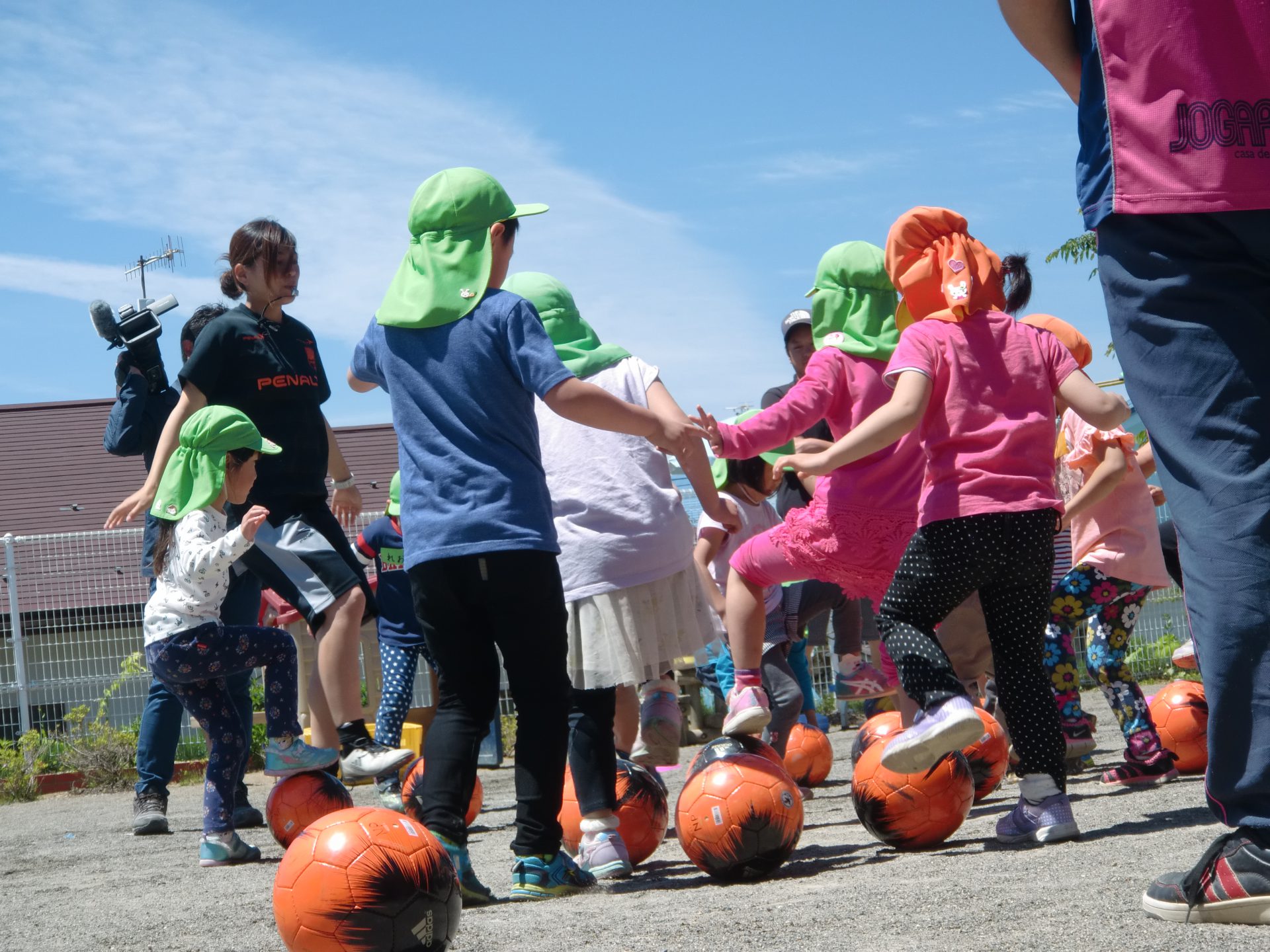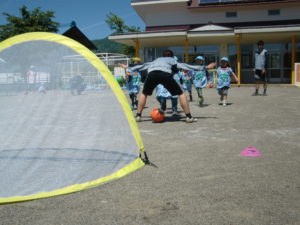 今年もパルセイロのコーチがやってきました。そして、鬼無里保育園の友だちとも再開です。