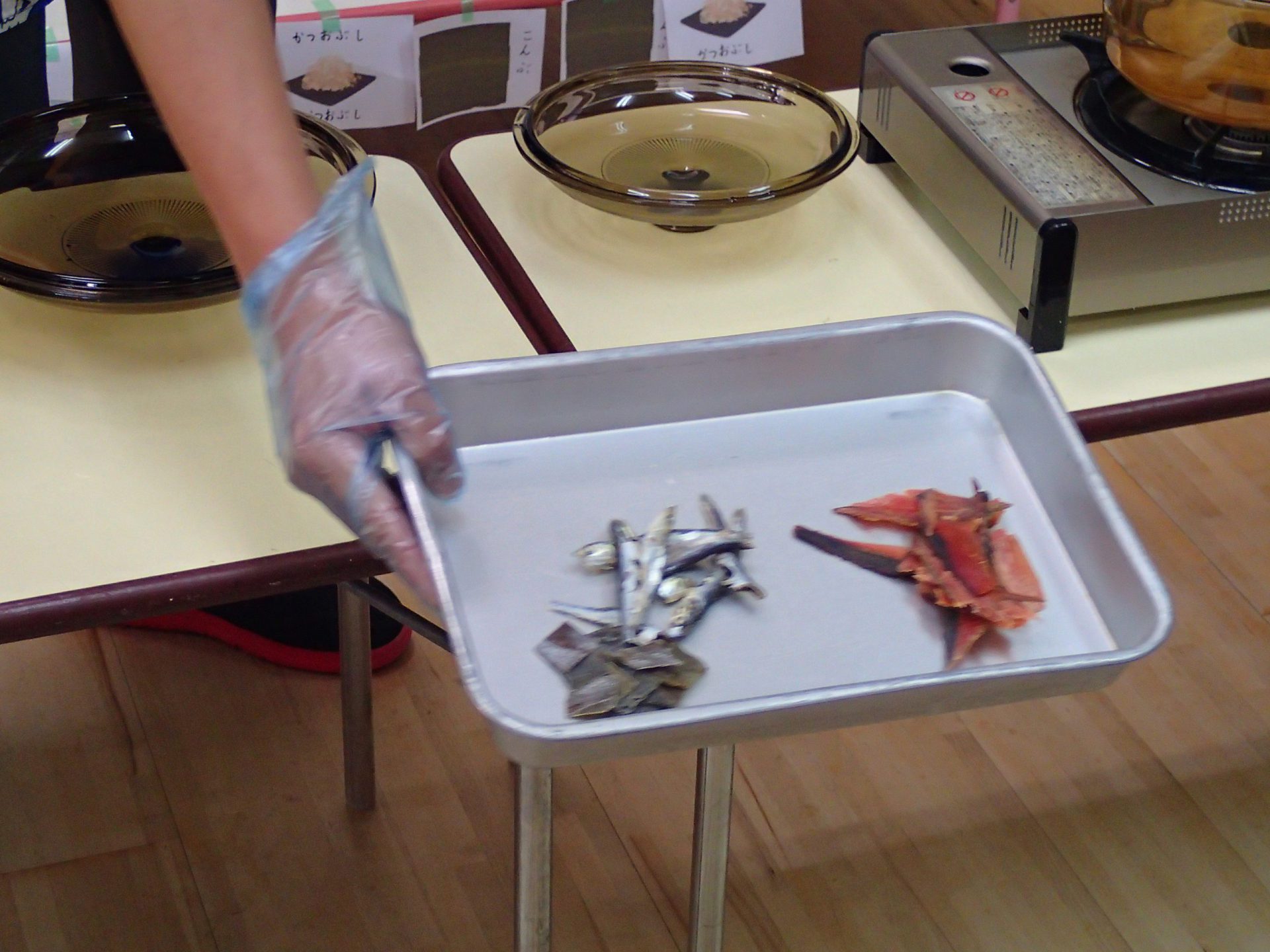 「ダシにもいろいろあるんだよ。」と茂雄先生が煮干し・昆布・鰹節を用紙してくれました。