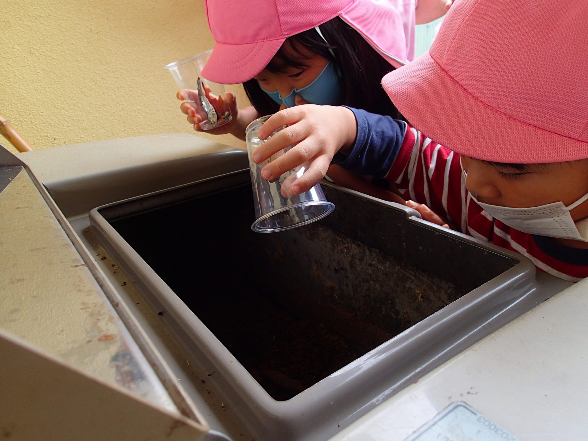 「煮干しが泳いでこいのぼりみたい!」「ブクブク泡も見えるよ」