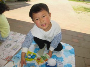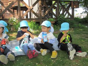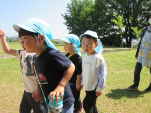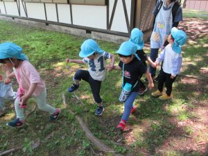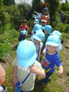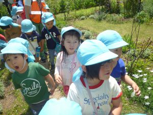途中風が吹き、アカシアの花びらが舞うと「うわー!!」と歓声があがり、手を伸ばして花びらを取ろうとする子がいました。
