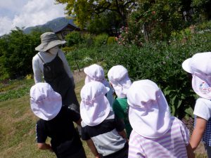 杉下さんの家のガーデンファームでは色とりどりの花々に大興奮。花の名前や特性など教えて頂き、みんな興味津々で聞いていました。