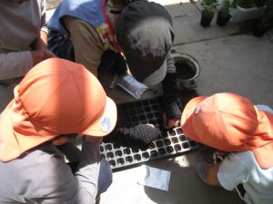 野菜の他にもファミリーデーで渡すための花の種も植えました。