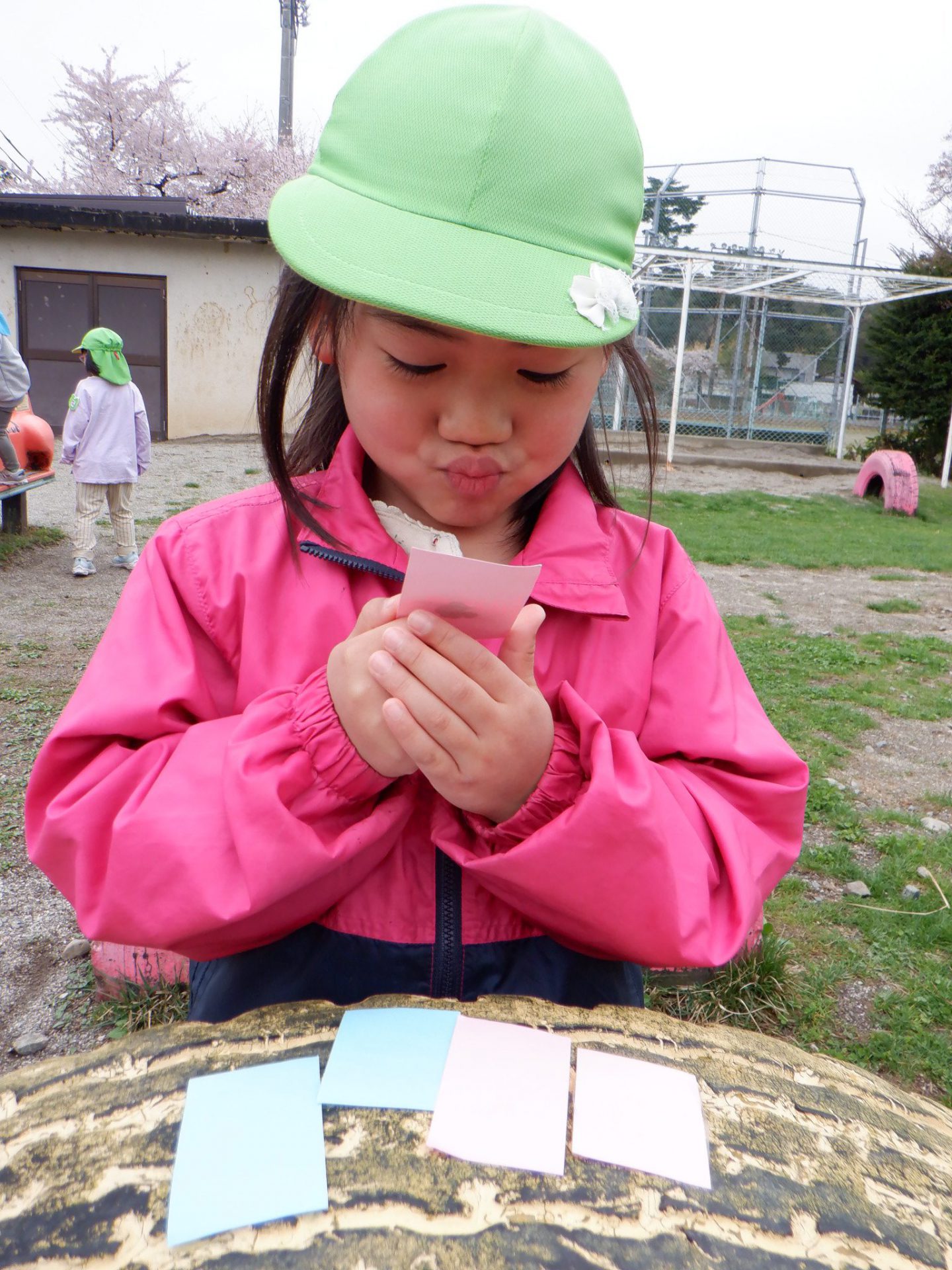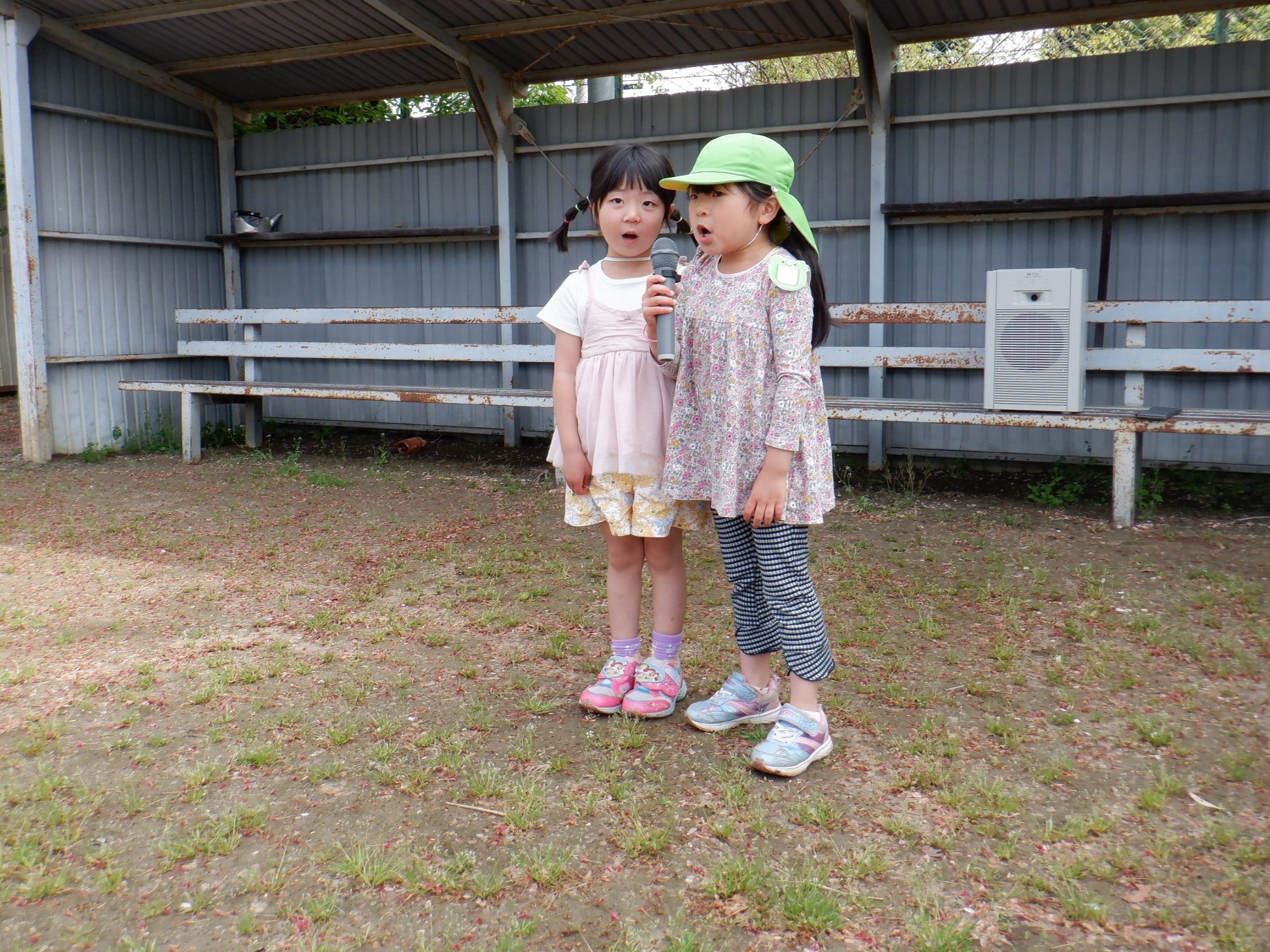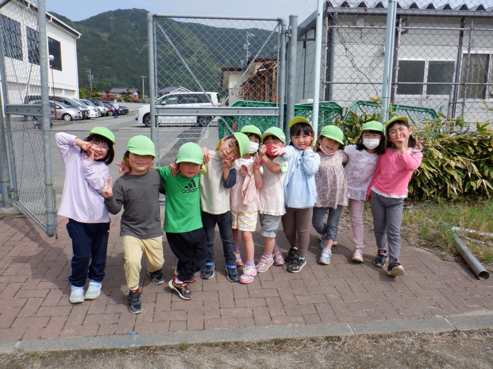 会の当日、小さい組さんに内緒で隣のグラウンドに隠しにいきました