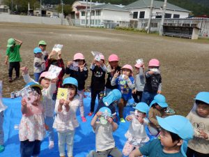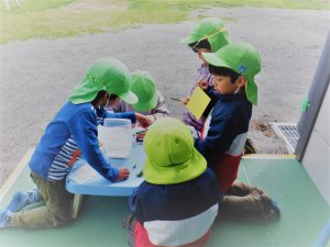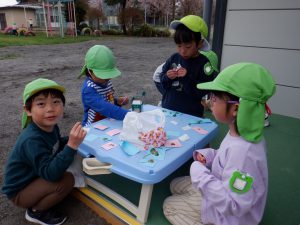 朝来ては、よつ葉を探しに行く日々が続き、小さい組さんにもあげたいね・・・と盛りあがり、「だいすきパーティ」(歓迎会)をすることになりました