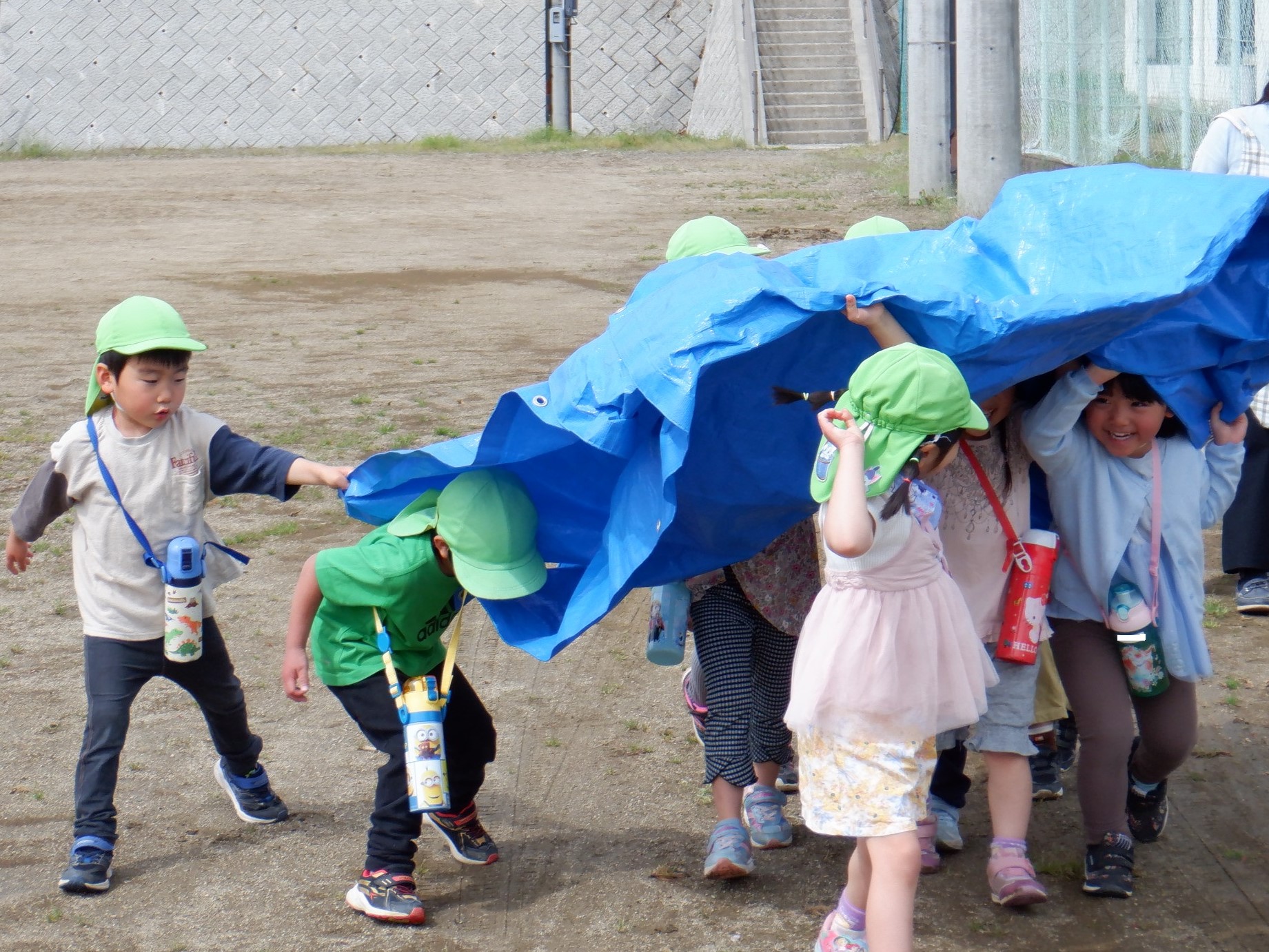 突然の雨? いいえ、小さい組さんに見つからないよう隠れているのです