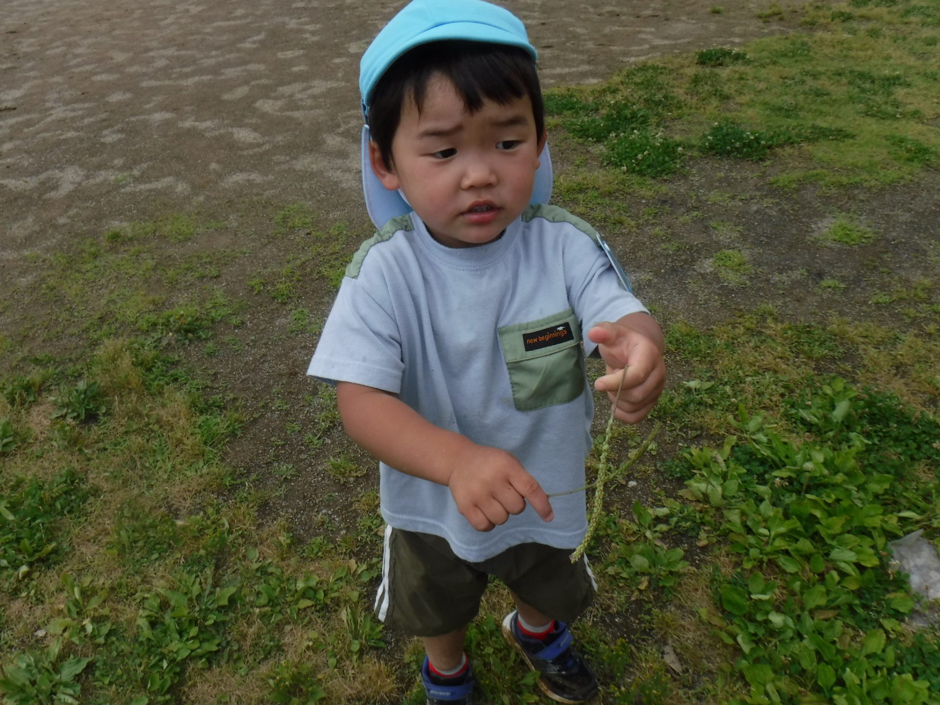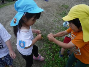 「ちょっとやってみよう。」と、遊びだすと・・・「先生やろう!」「オオバコってこれ?」と大はしゃぎ。