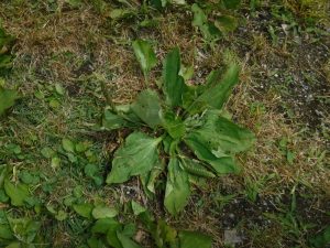 園庭の築山やクラスの前の草原にオオバコがいっぱい!