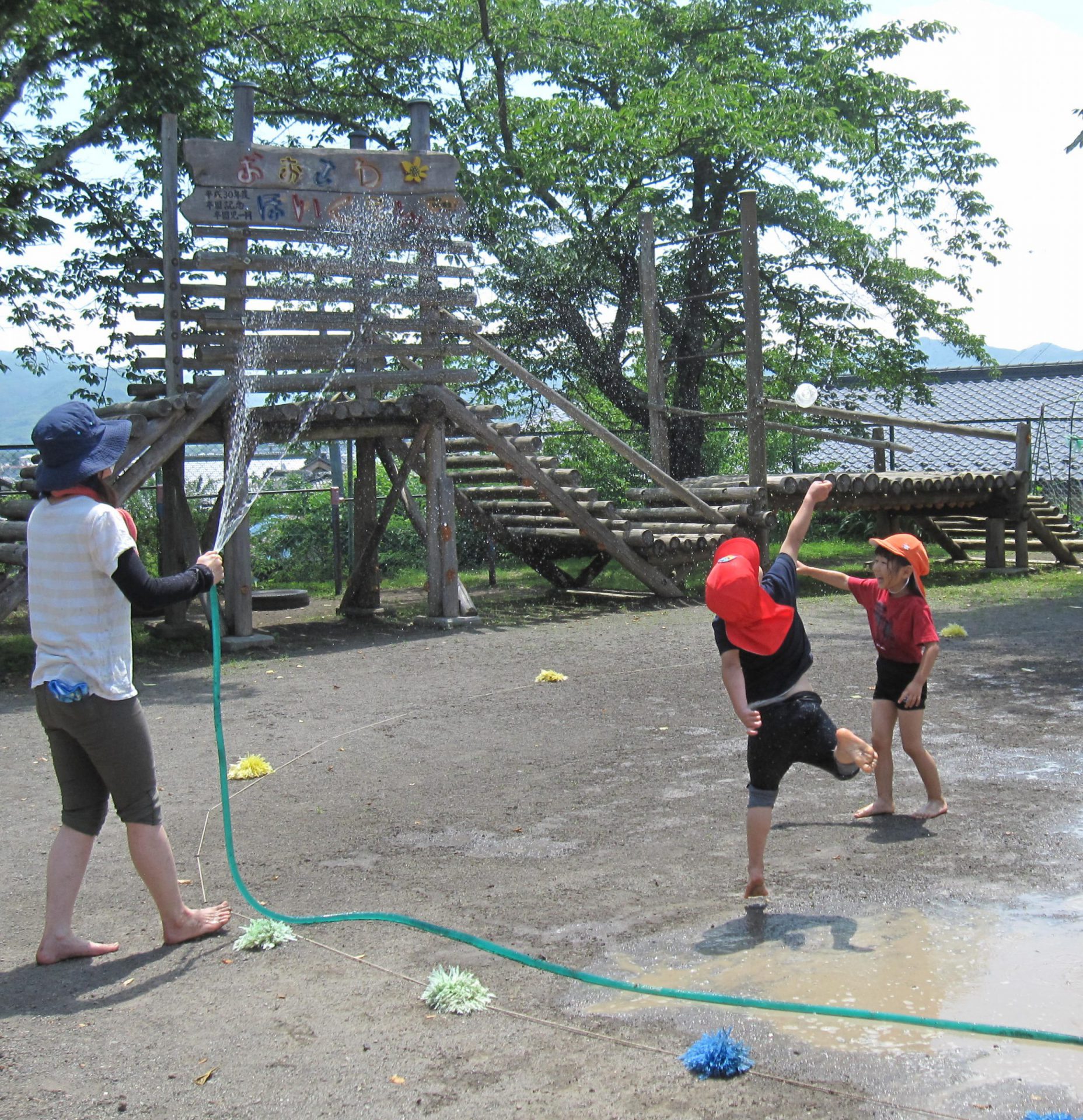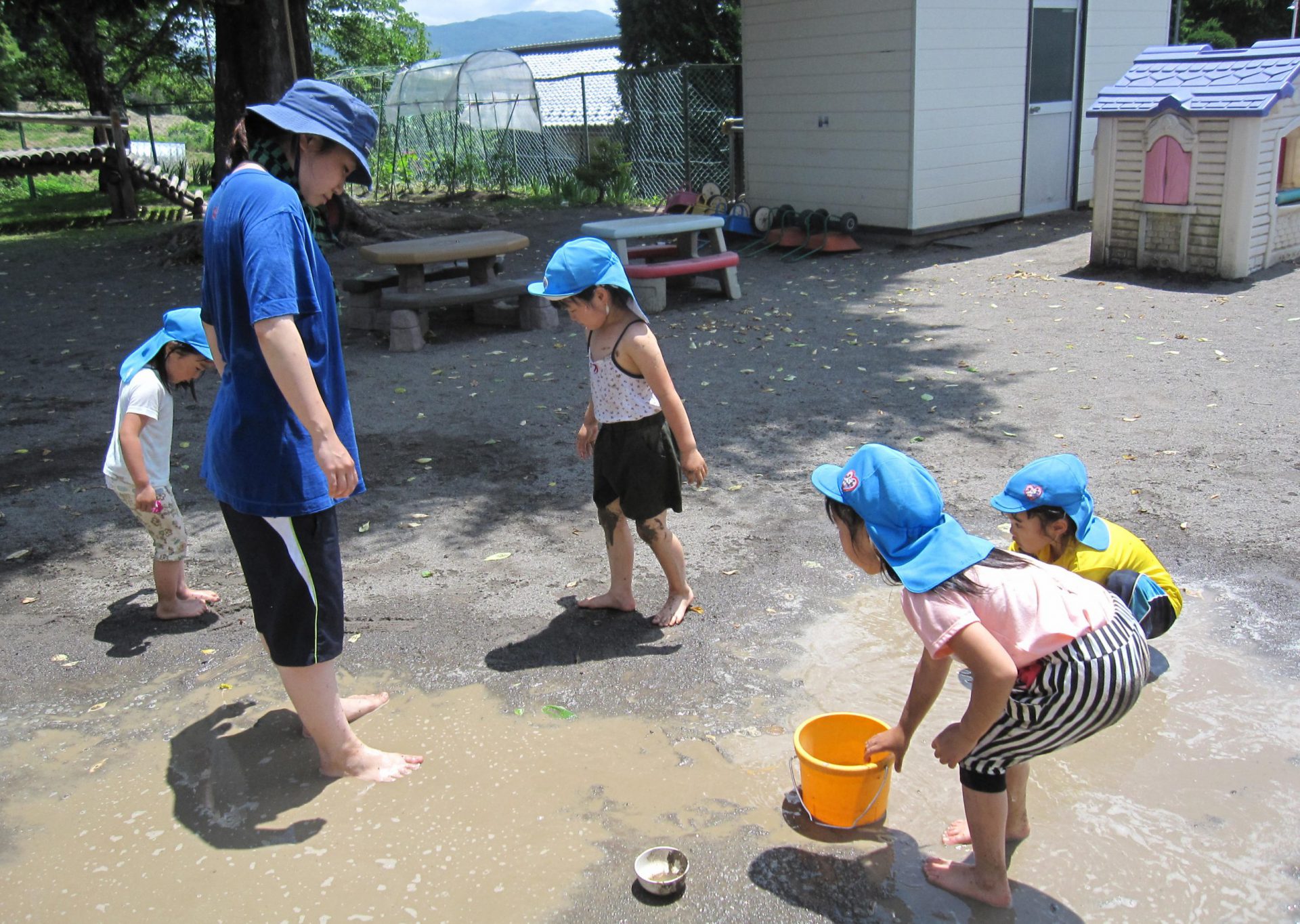 裸足になって、みんなで水遊びをしよう!!