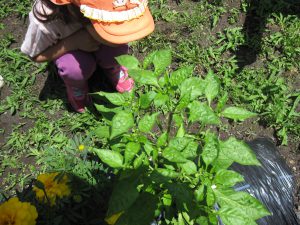 「ズッキーニの花は黄色だね」「ピーマンは白だ」