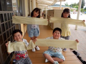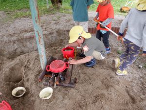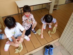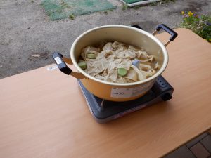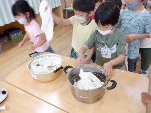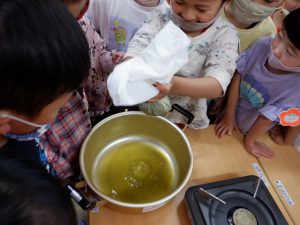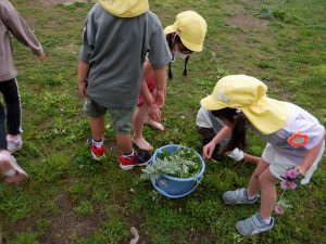 出来上がるまでの間、田んぼのおたまじゃくしと遊んだり