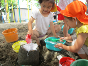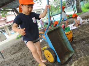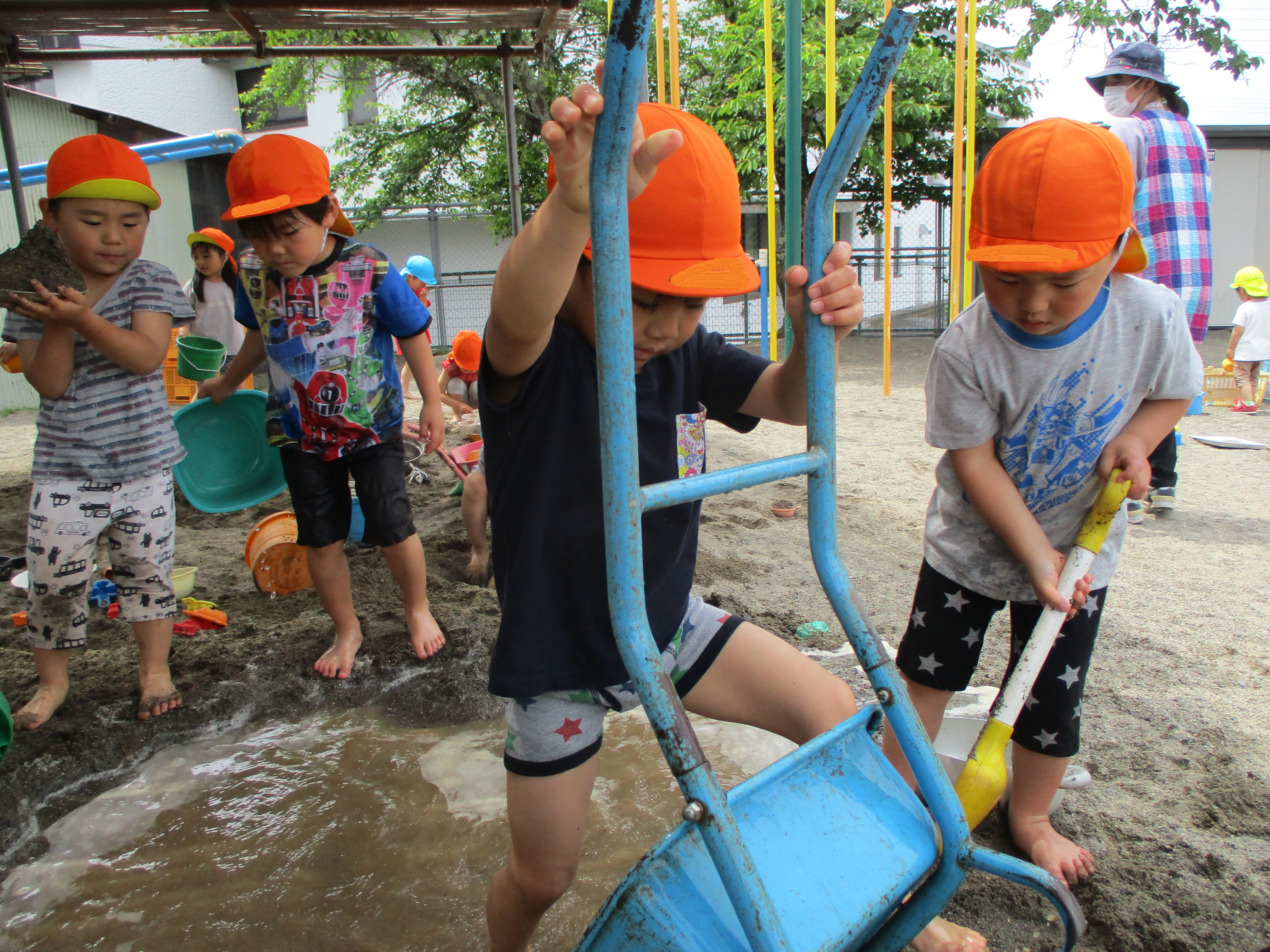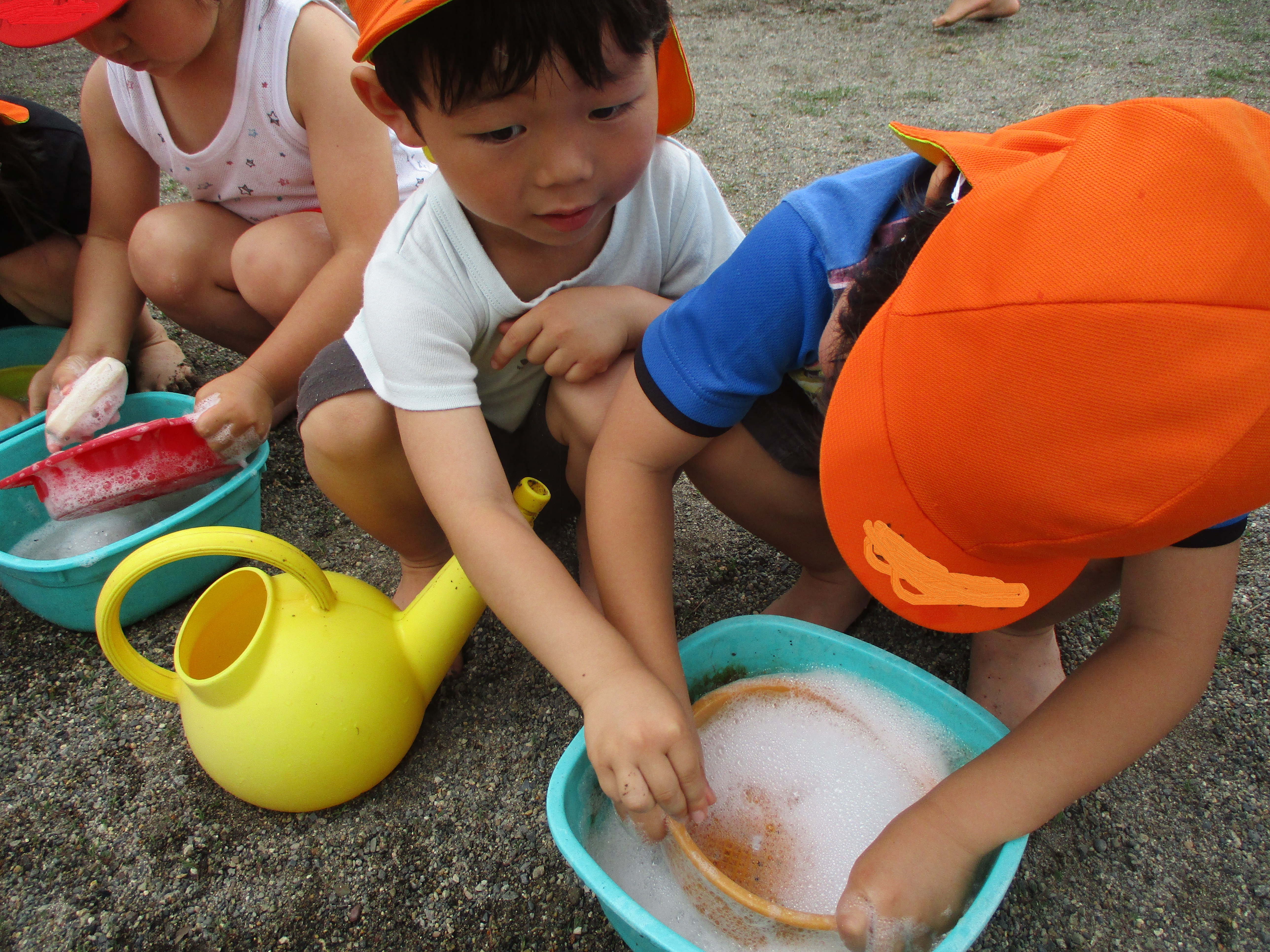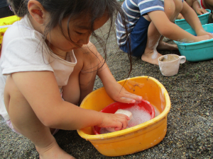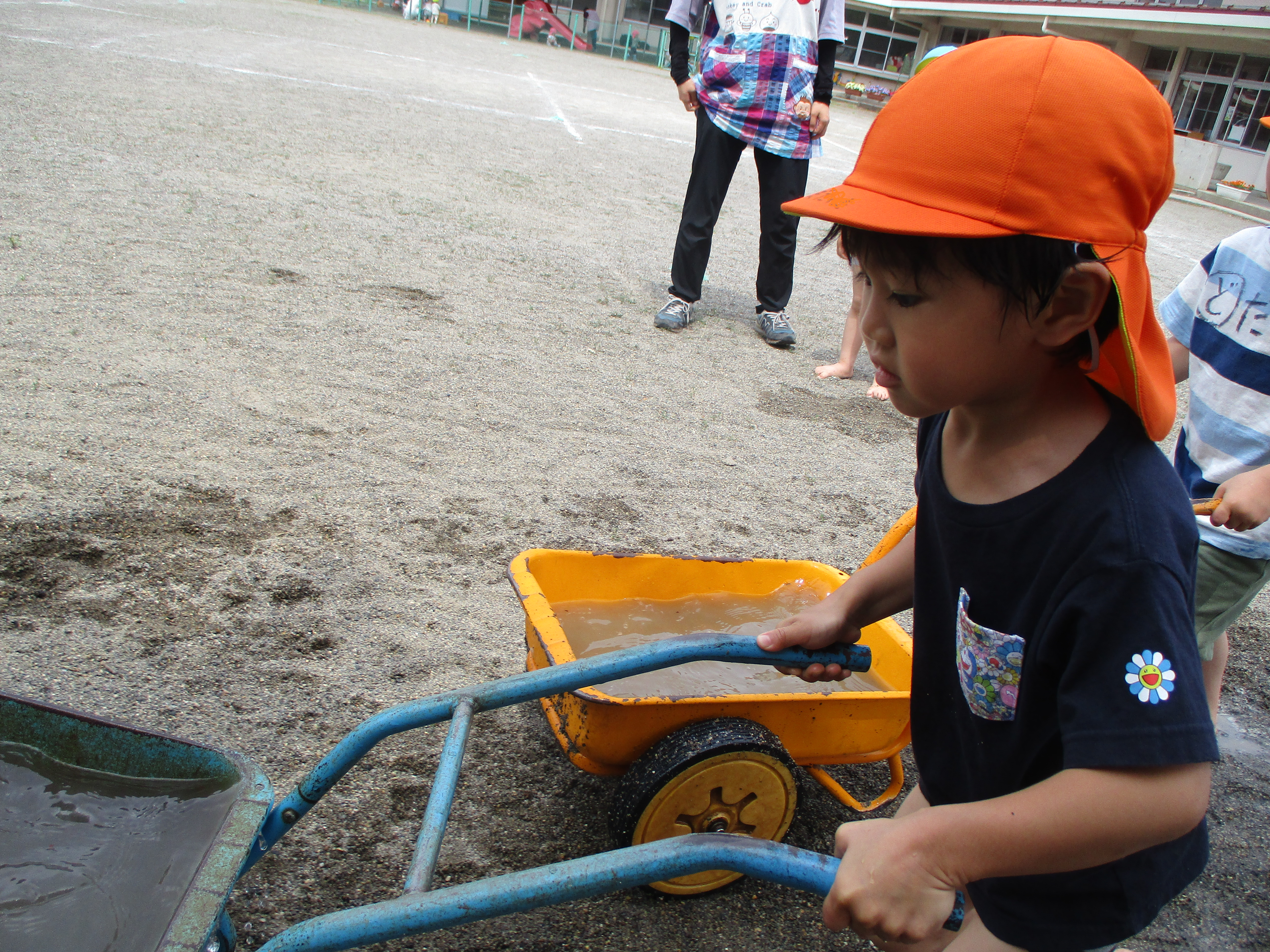 さて、6月から始まったどろんこ遊び。そして7月から始まったプール遊び。もうすぐプールも終わってしまう時期となりましたが、暑い夏の子ども達の様子を紹介していきたいと思います。
