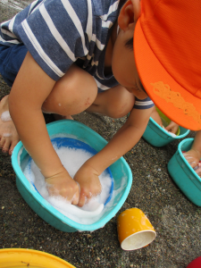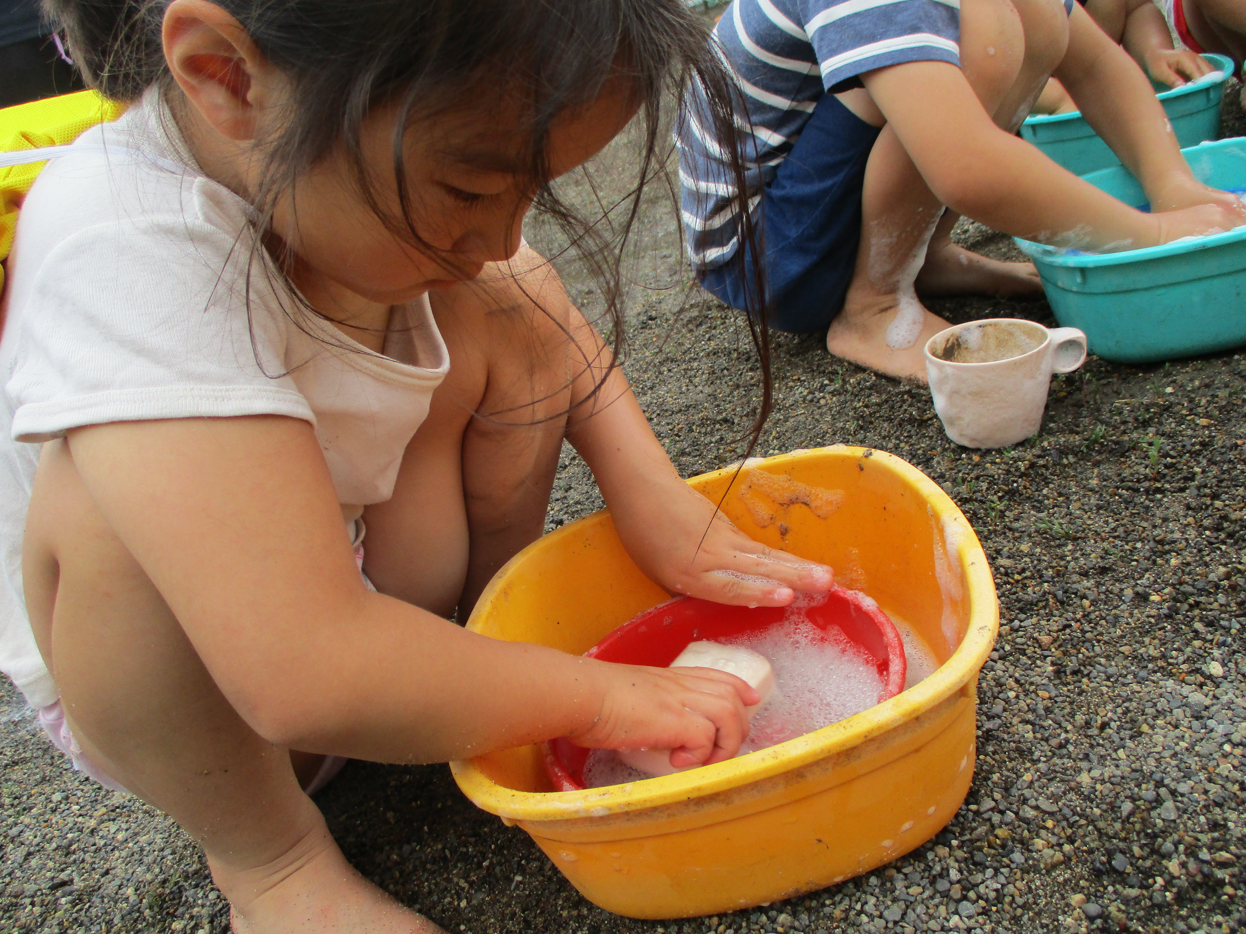 実はあえて石鹸だけを用意し、『子ども達、どうやって使っていくかな?』と、様子を見ていた私。
