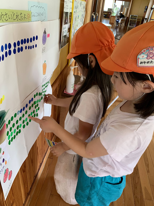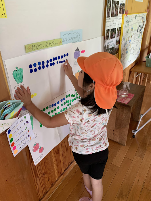「Rちゃん、ナス貼って」「わかった!私が丸ナス貼るね!」友だちとの連携もバッチリ☆