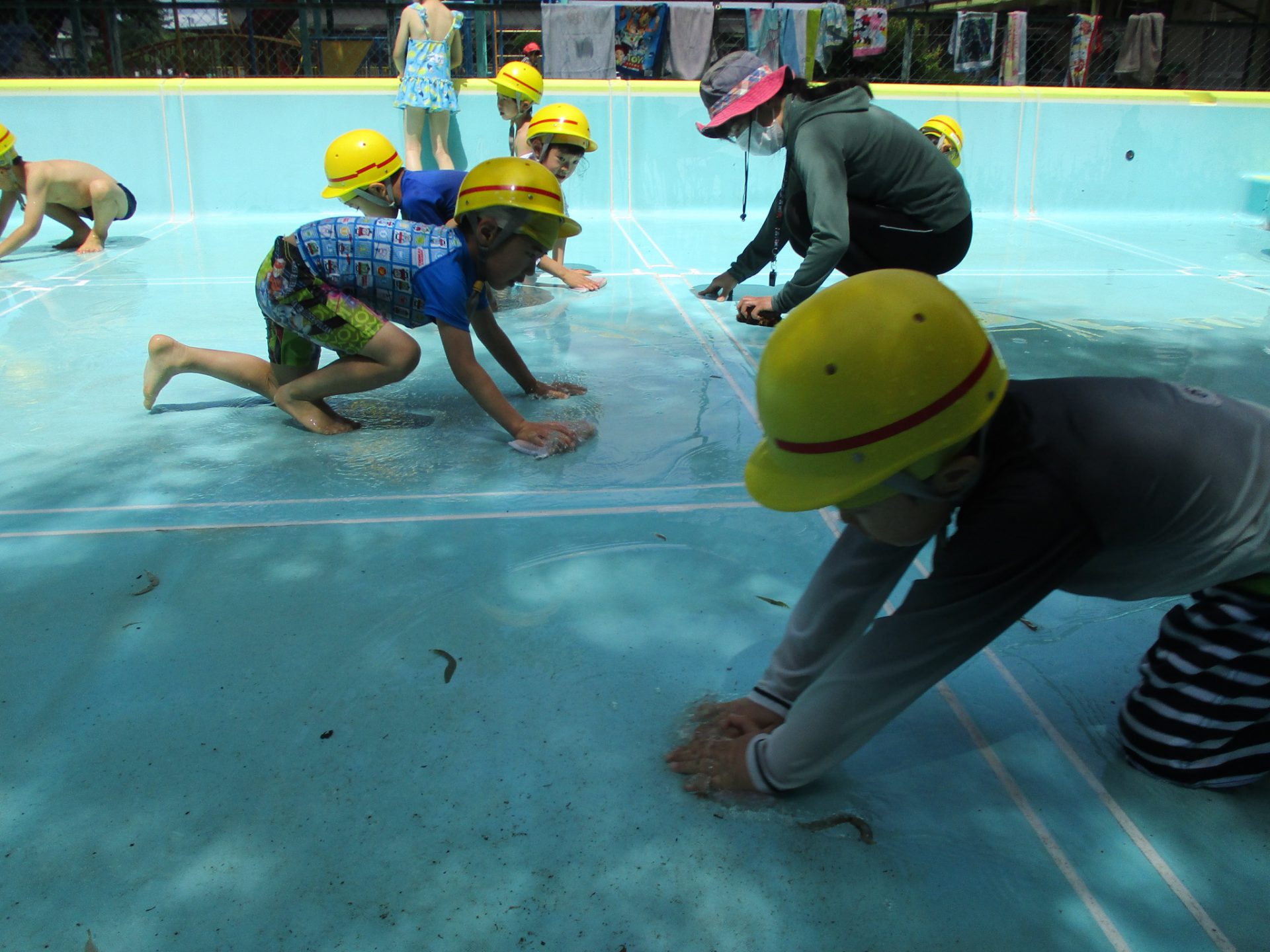 みんなで力を合わせてプールをピカピカにしてくれました!