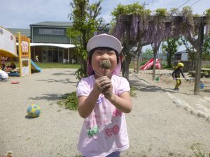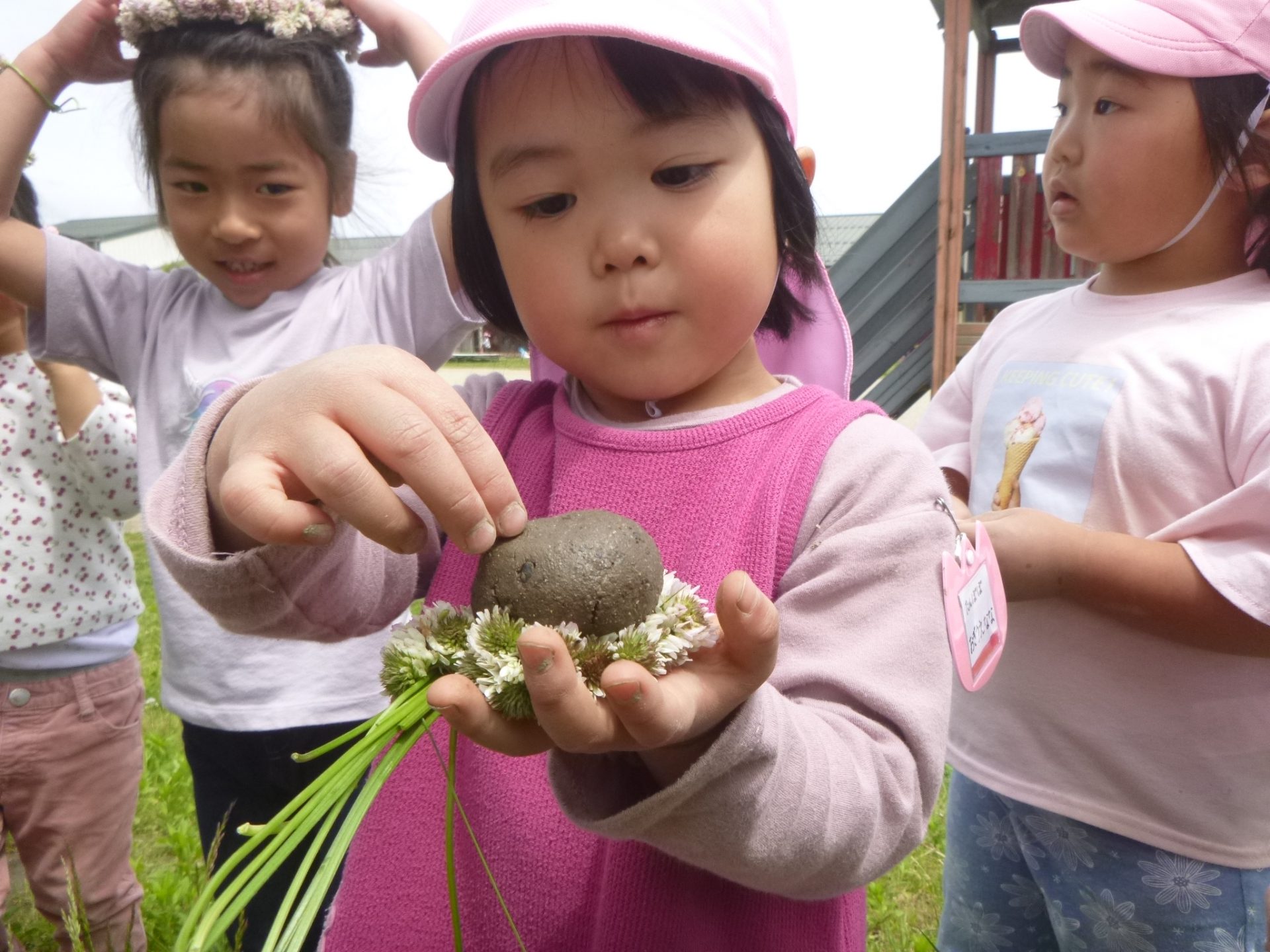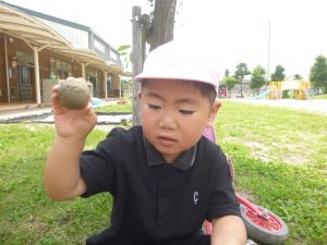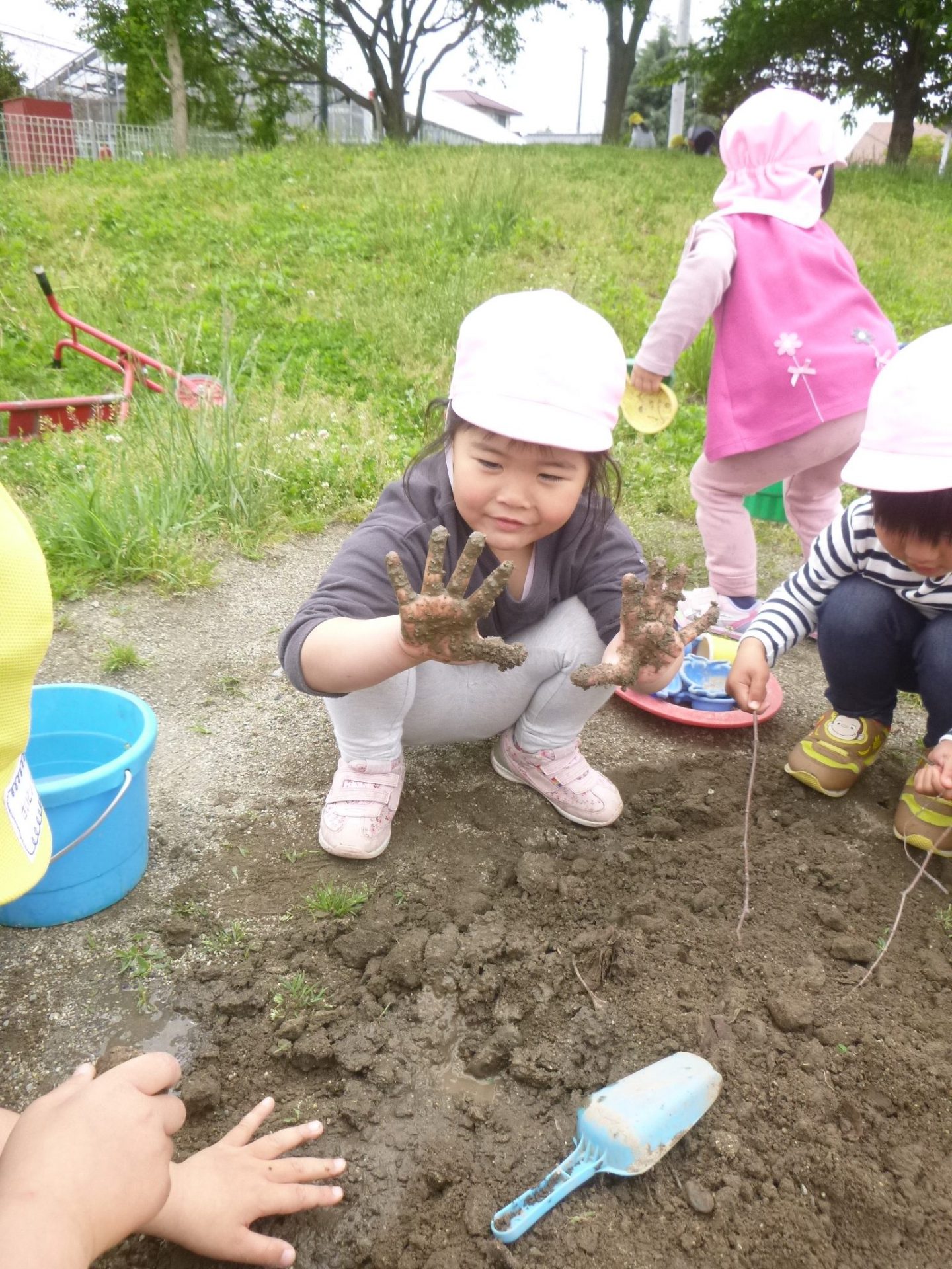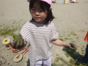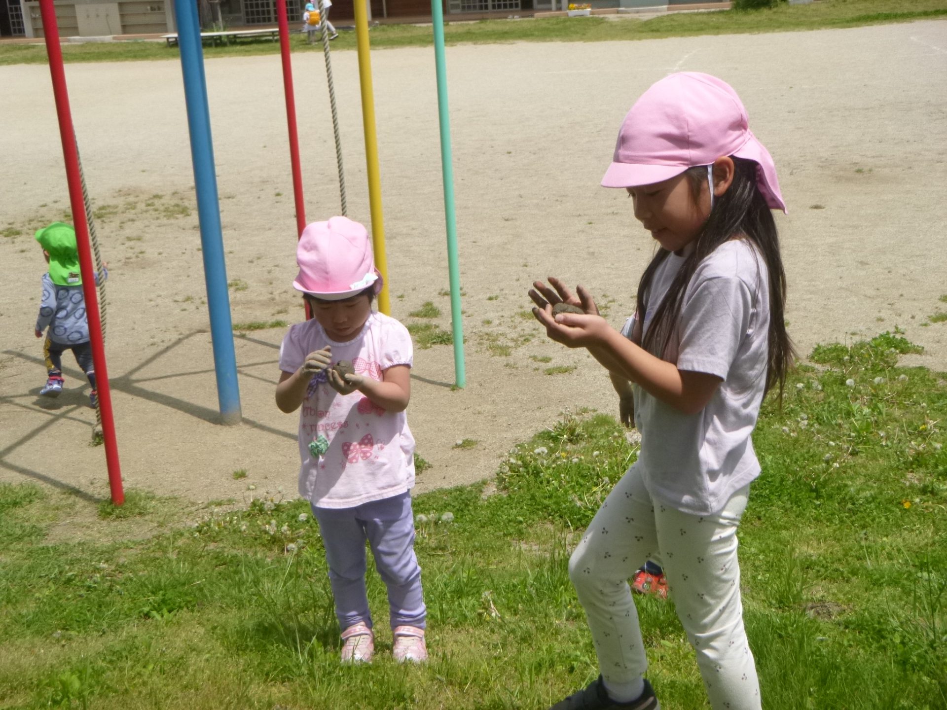 作る過程で泥だんごにヒビが入ってしまったり、水を入れすぎベチャベチャになってしまったり‥と、苦戦する姿もありましたが、その都度考えてやってみようとする姿が見られました。