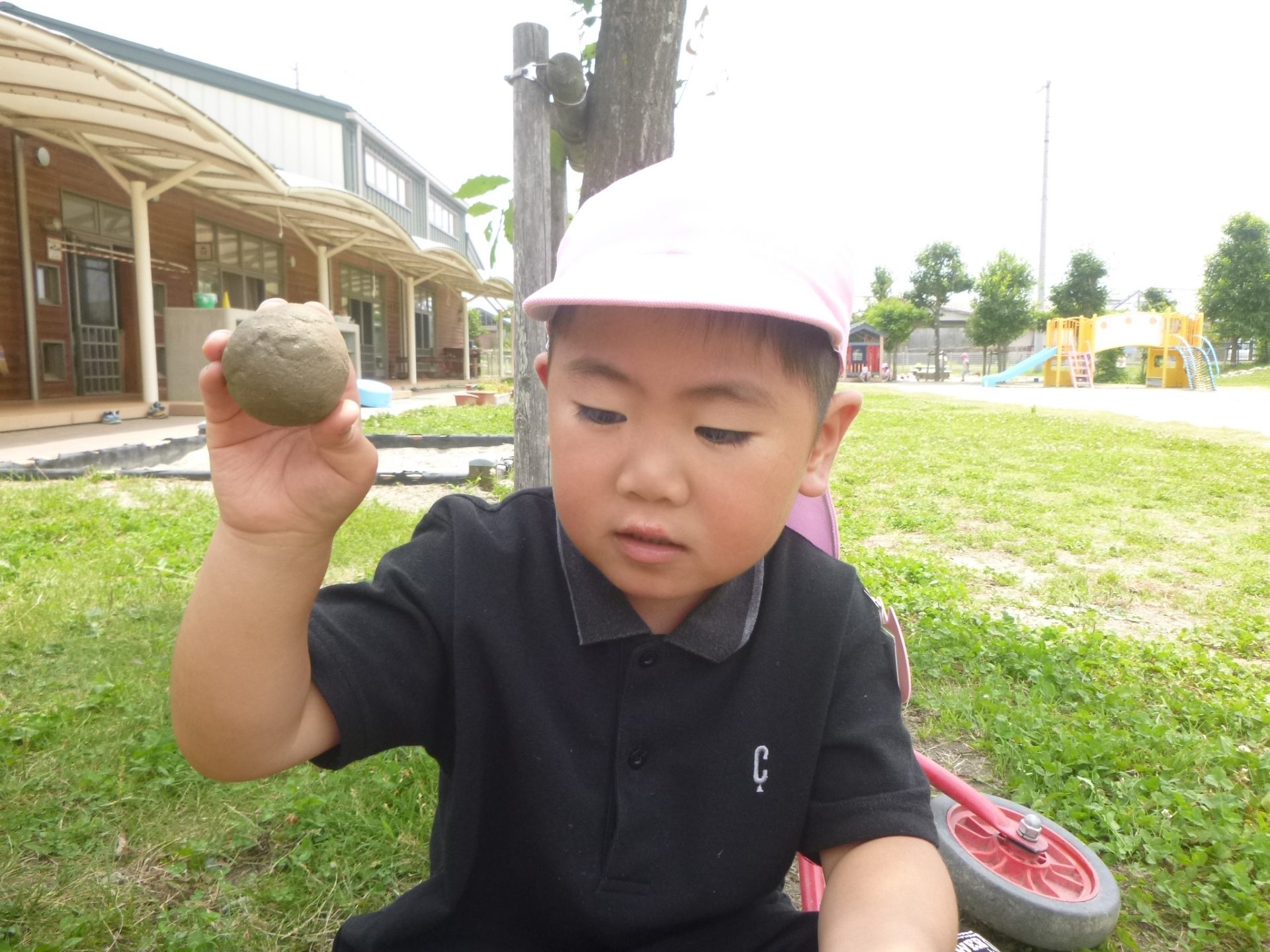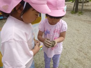 「固くなってる!!」と泥だんごの固さに気づいた子ども達。