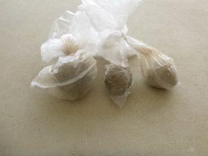 「よし!今日は袋に入れて一晩寝かせよう」と師匠が言い、泥だんごを袋の中へ入れました。