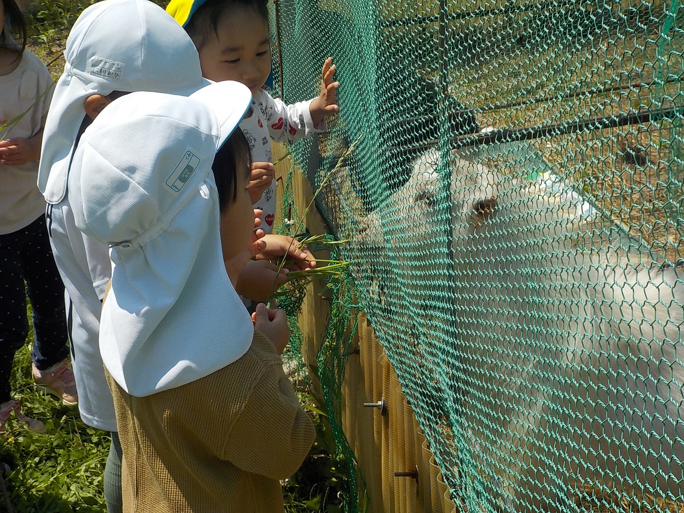エサをあげたり、触ったり、身近で動物が動く姿を見ることができ、子どもたちにとってとても楽しい経験になったようでした。
