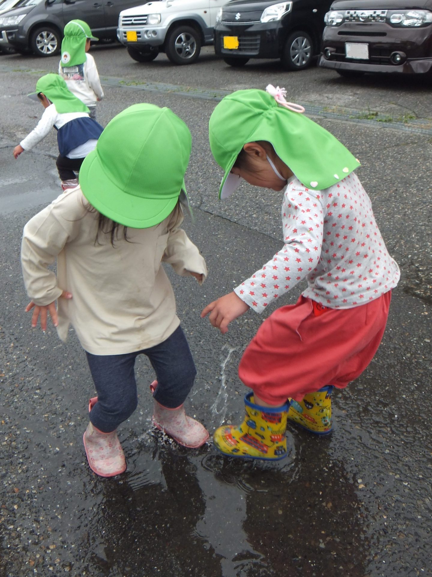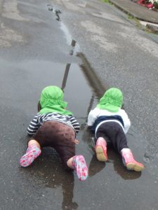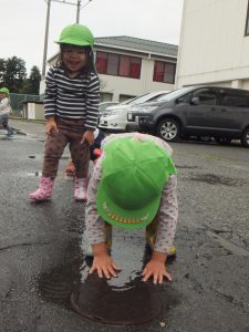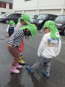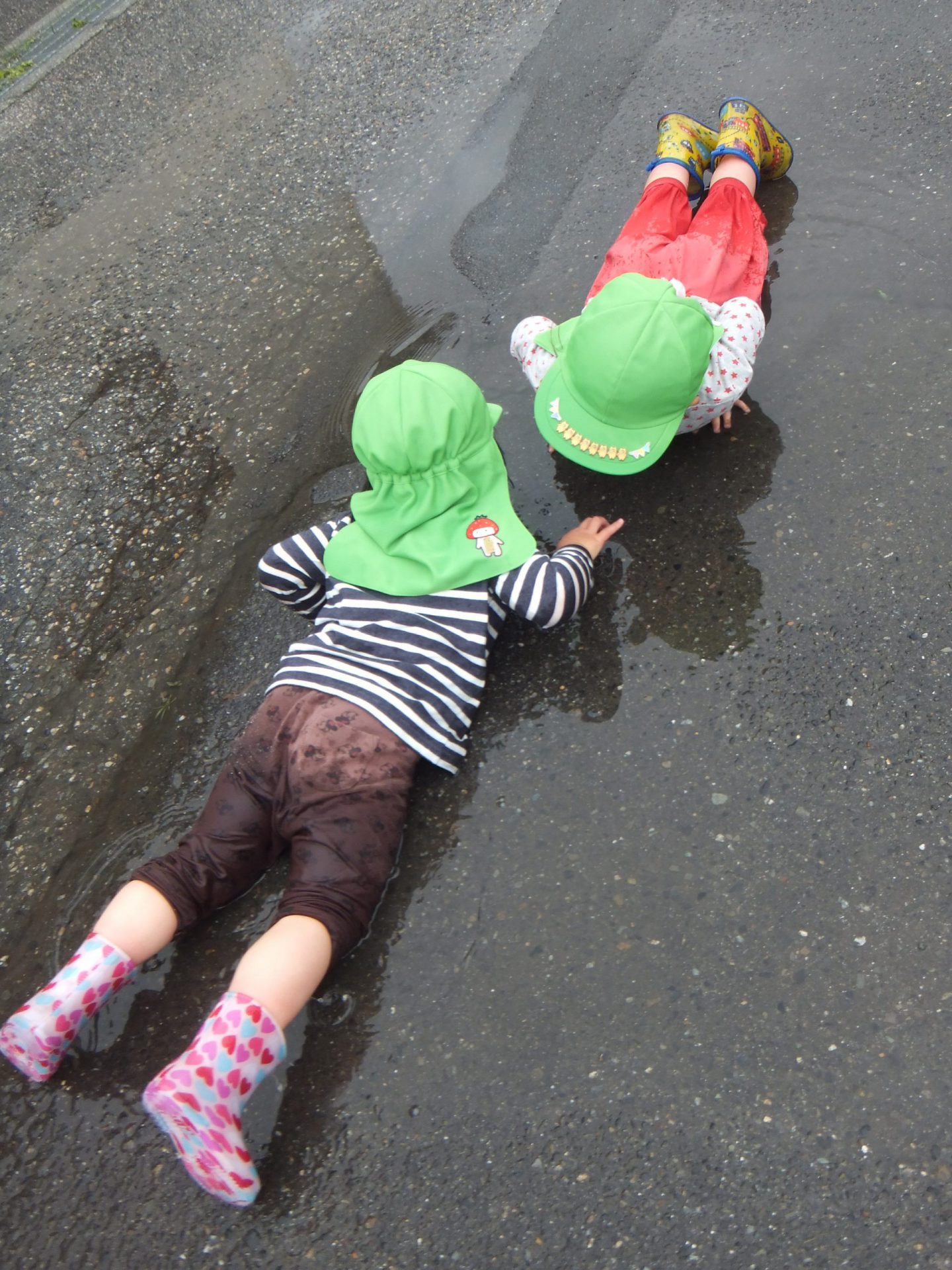 満足するまで、水たまりと仲良しの子どもたちでした。