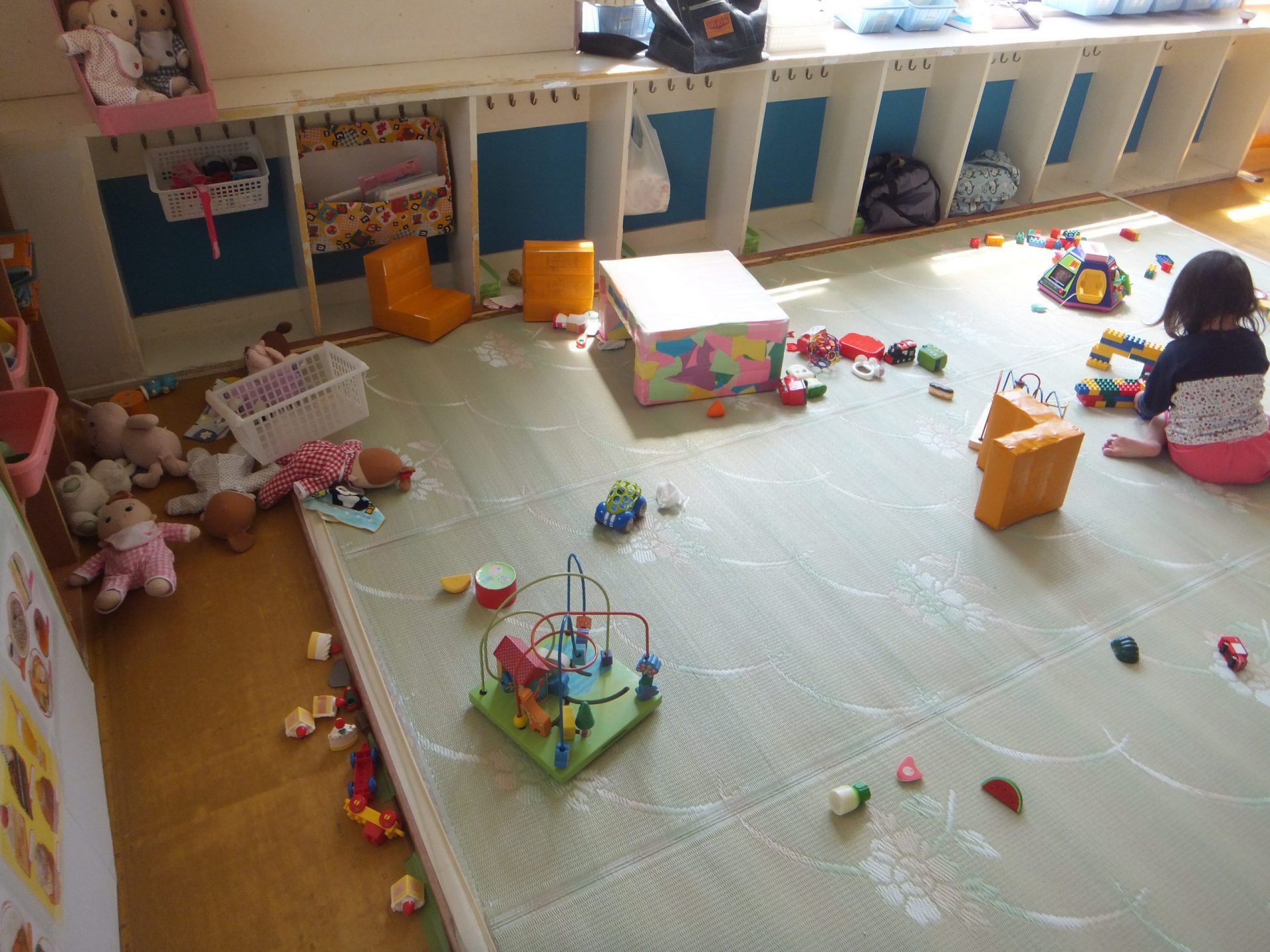 おもちゃで遊びながらも、時おり外を眺めています。