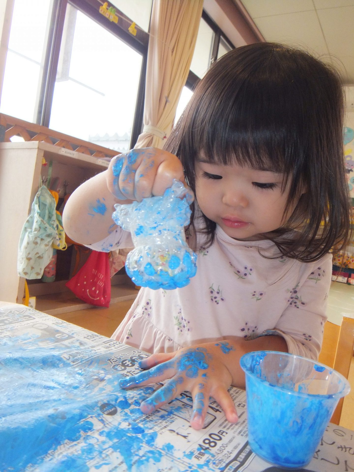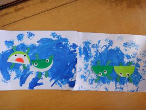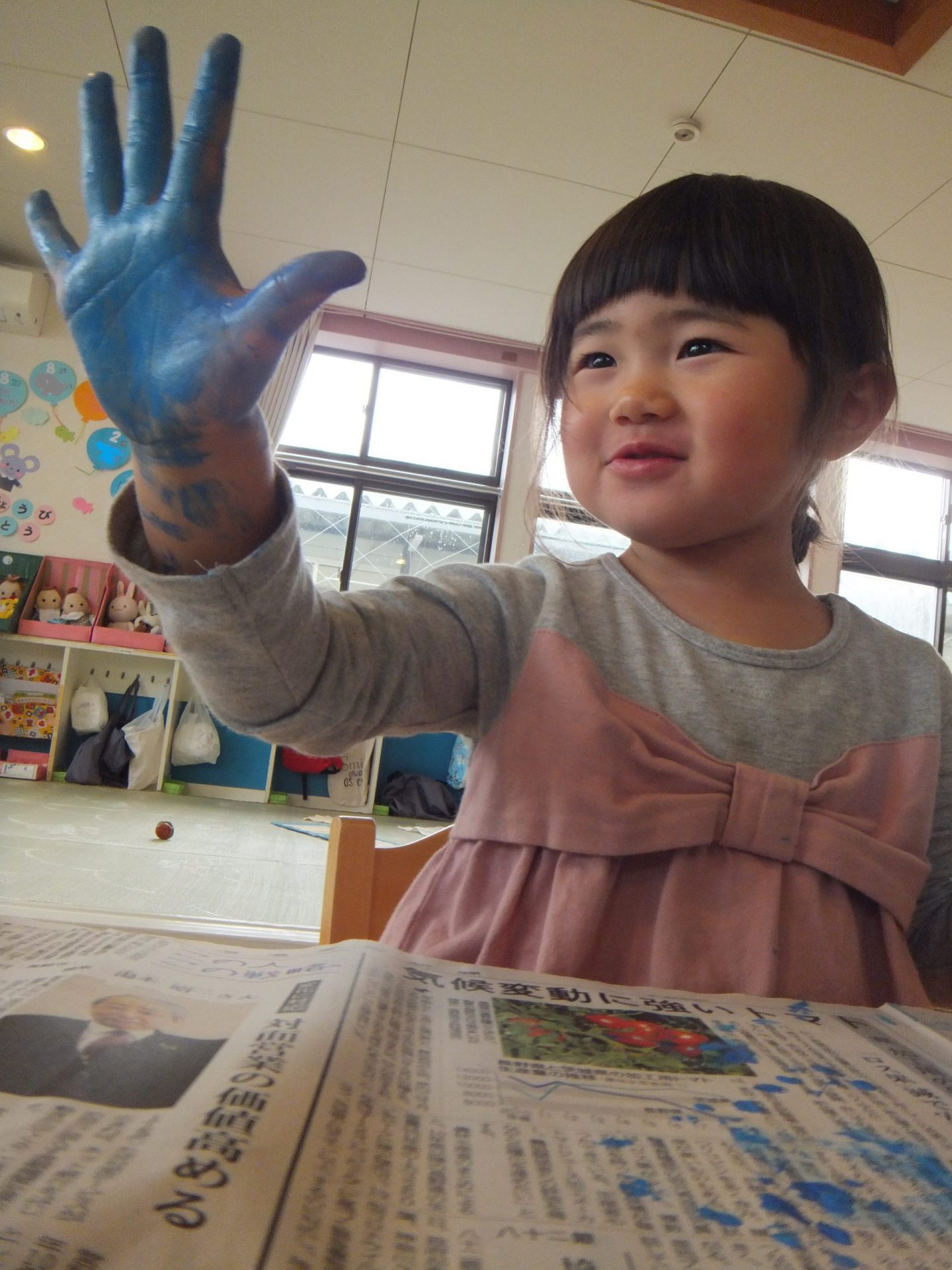 えのぐ遊びが終わり、ふと一人のお友だちが「せんせーい 雨やんだよ!」