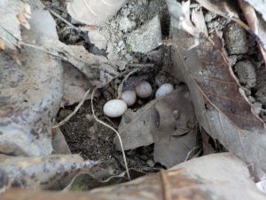 「あっ、カナヘビの卵だ。」