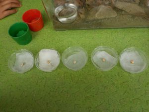 カナヘビの赤ちゃんはどうやって産まれるのかを調べ、卵に合った土を用意して別の飼育箱に移しました。