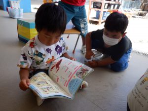 園に戻ると早速図鑑を広げて、観察することも楽しいようです。