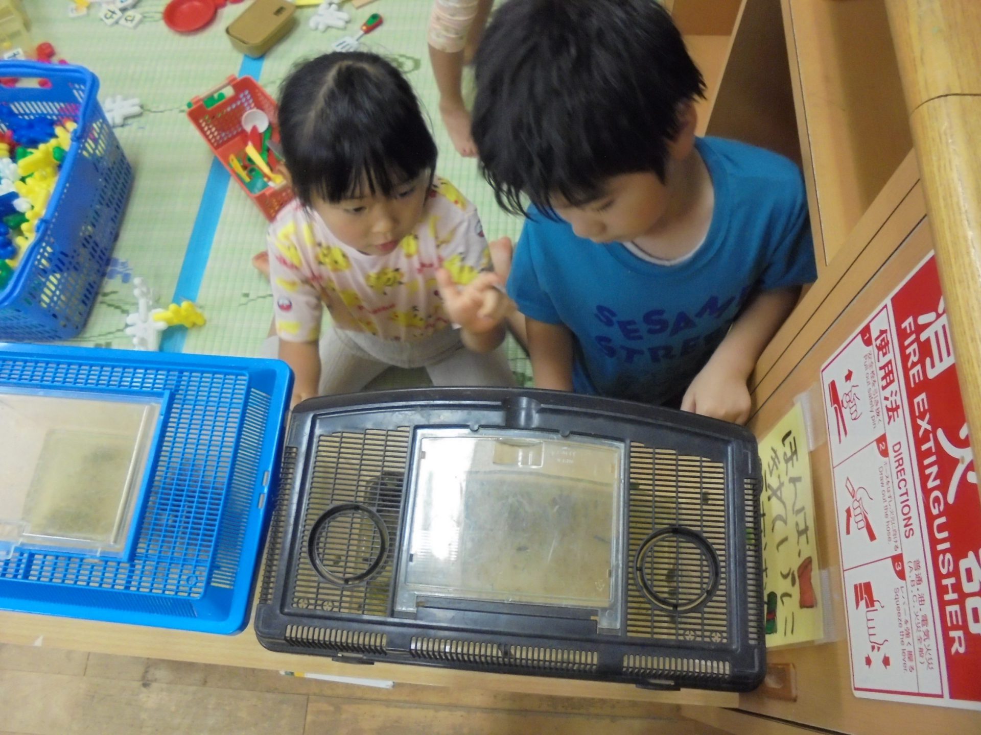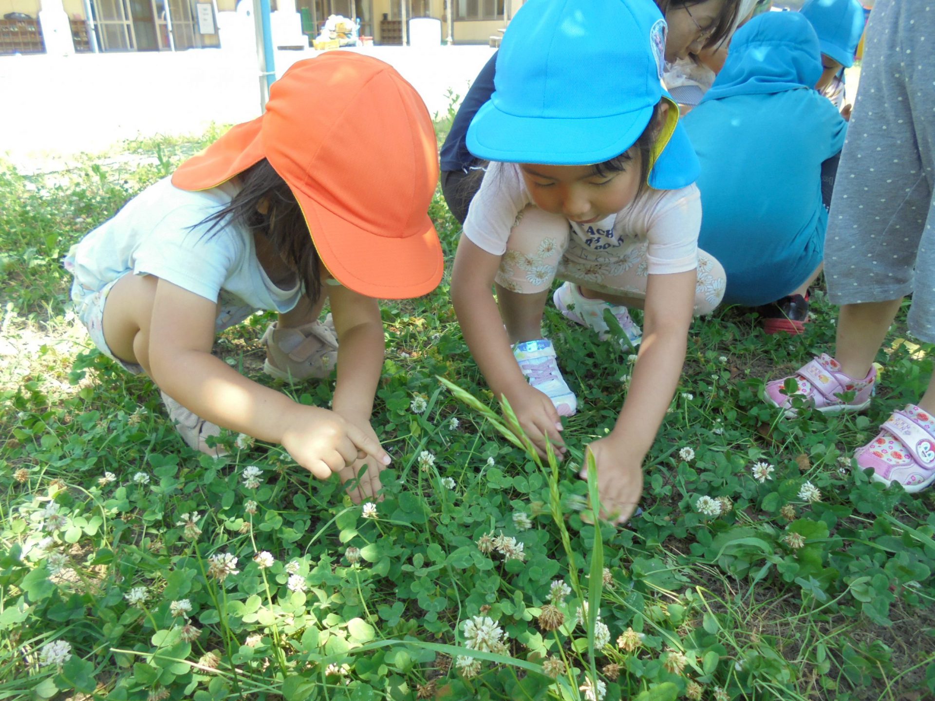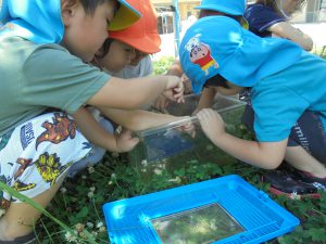 生き物が大好きで興味をもっている子どもたち。春はアリやダンゴムシ探しに夢中になり、プールのオタマジャクシを見つけた時には目をキラキラさせて喜ぶ姿がとても印象的でした✨子どもたちの興味・関心に寄り添い、やってみようとする気持ちを大切にしていきたいです。また、身近な自然に触れることで生き物を大切にする気持ちにも気付いていけたらと思います😊
