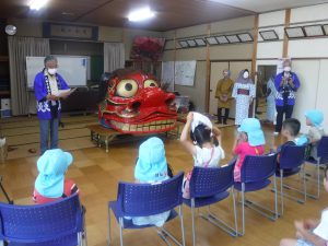お獅子が大好きな年中のお友達に地域の方が「お獅子を見においで。」と誘ってくださいました。