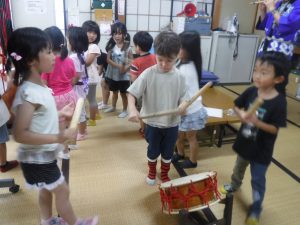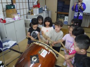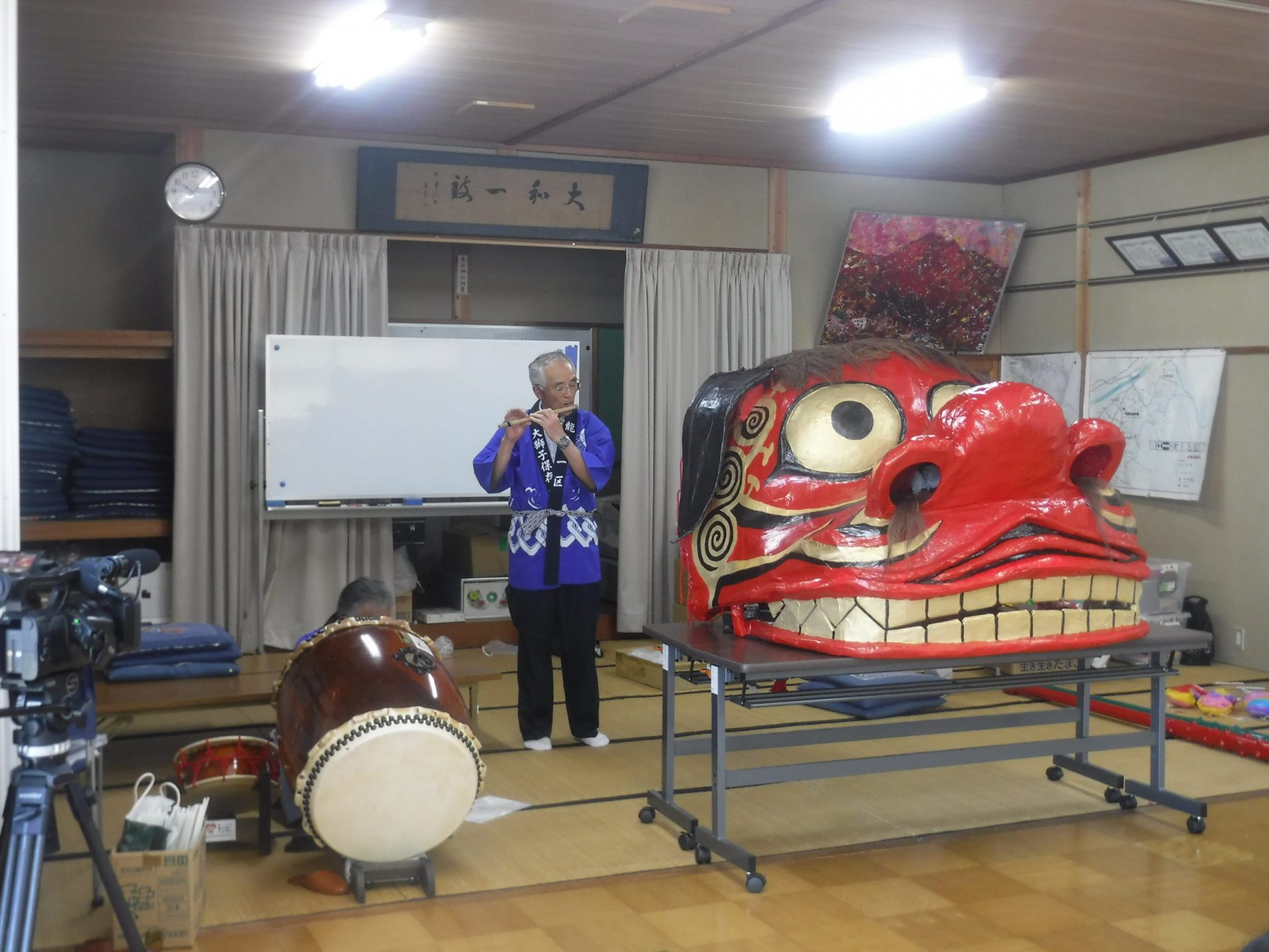 それを見て保存会の方が太鼓と笛の演奏をしてくださいました。