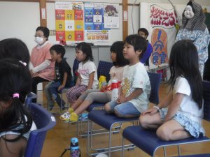 「お獅子に噛んでもらうと元気になれる。→暑い夏も乗り越えられる。すごい力をもっているんだよ。」と教えていただき、頭を噛んでもらいました。