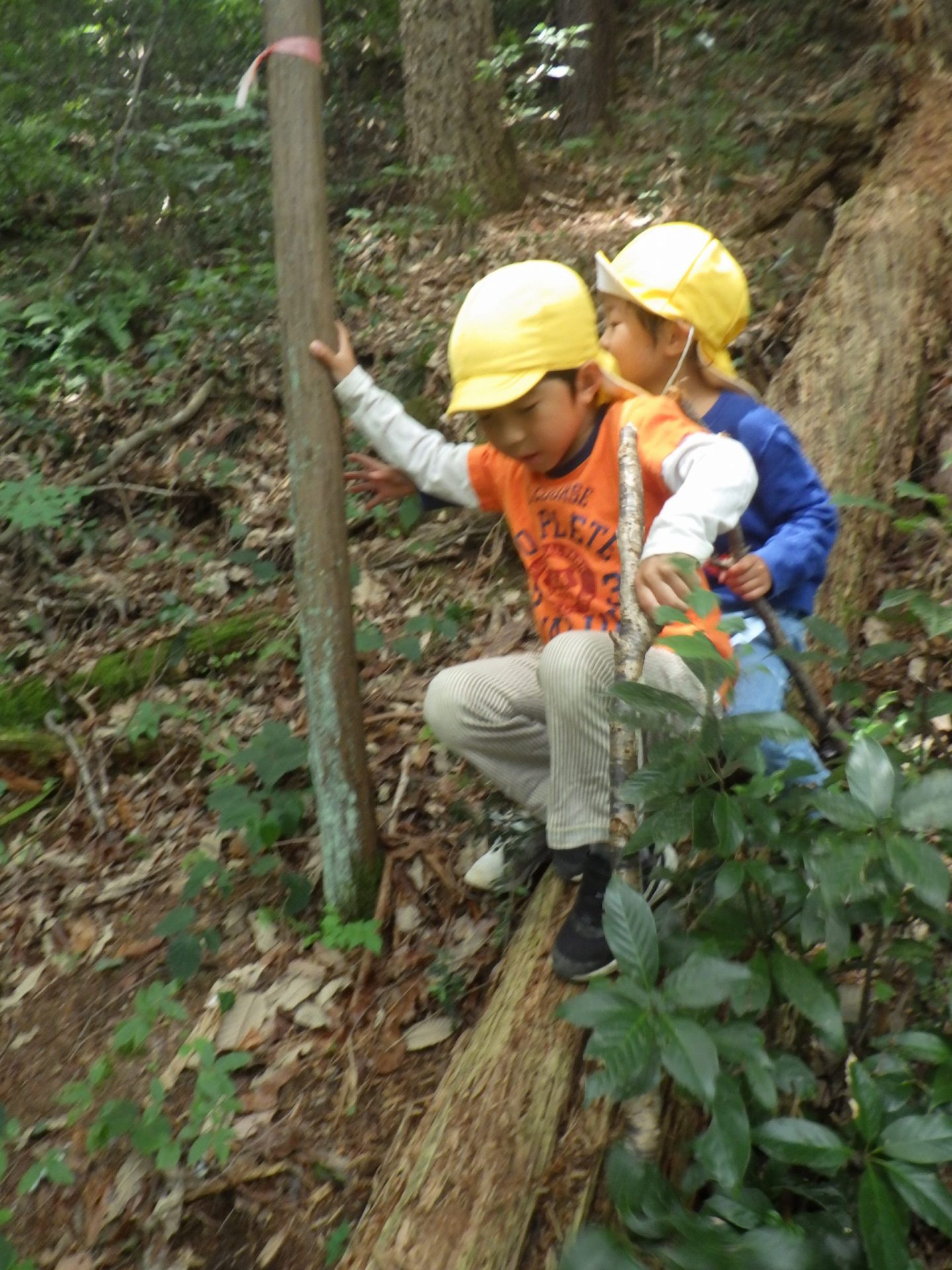 ・倒れた木に登るの手や足に力を入れるといいんだよ。