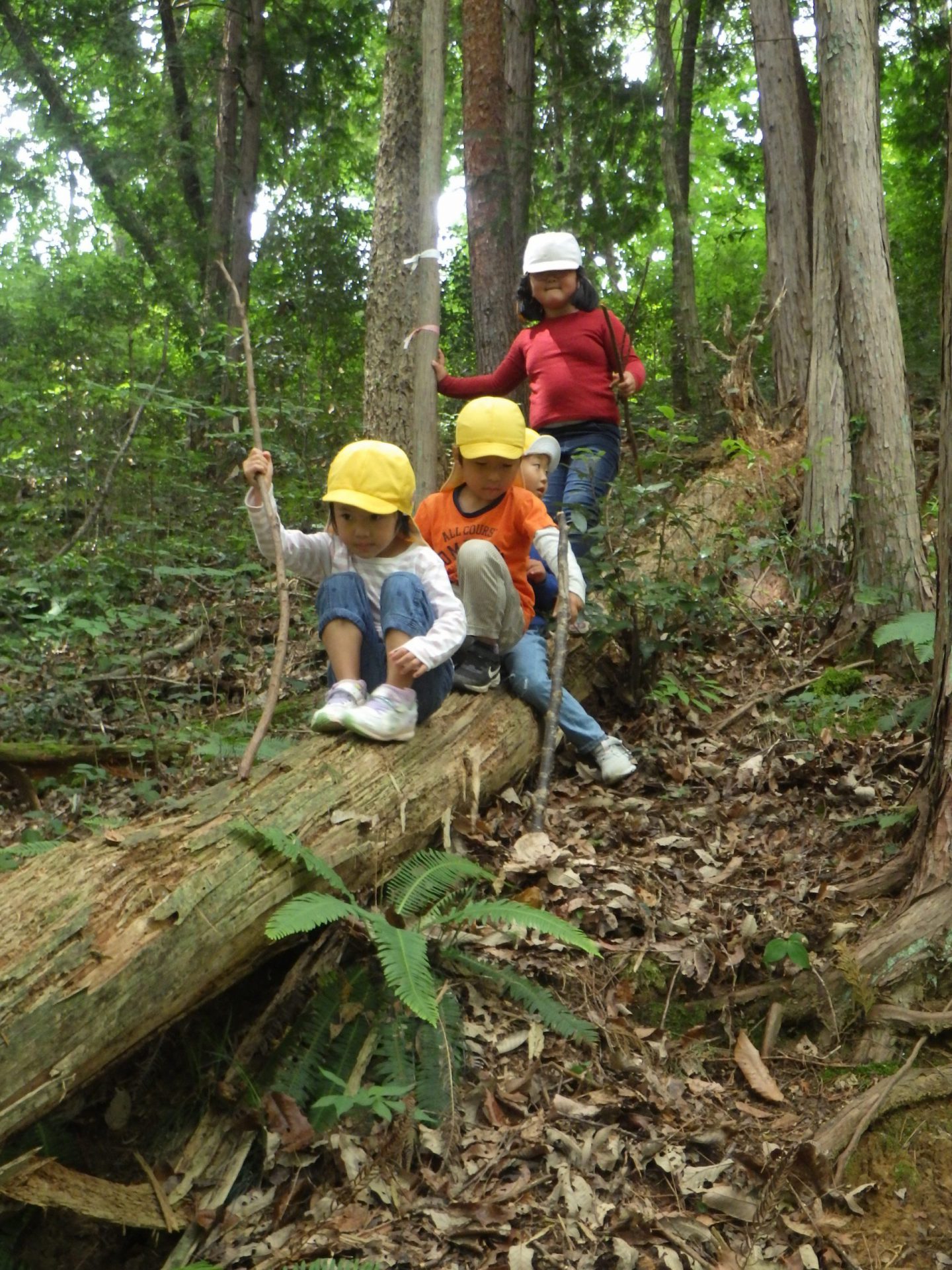・山の中での行動範囲も広がってきており、山の中で楽しみを見つけながら歩き回ることで、自然と体作りができていきそうだ。子どもの発見や気づき、子どものつぶやきに耳を傾け、気持ちの共感を心がけていきたい。