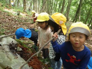 森の中は、いろいろな物があり、子ども達は興味津々です。