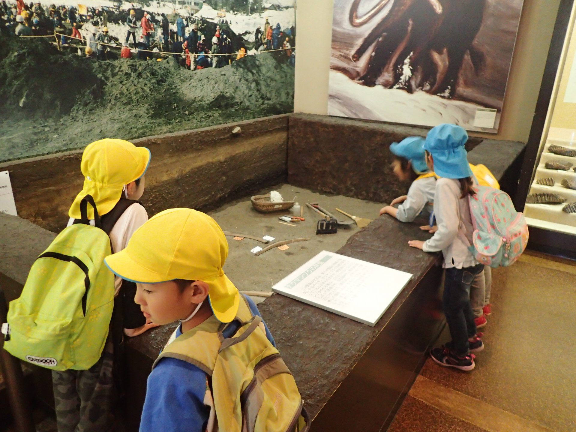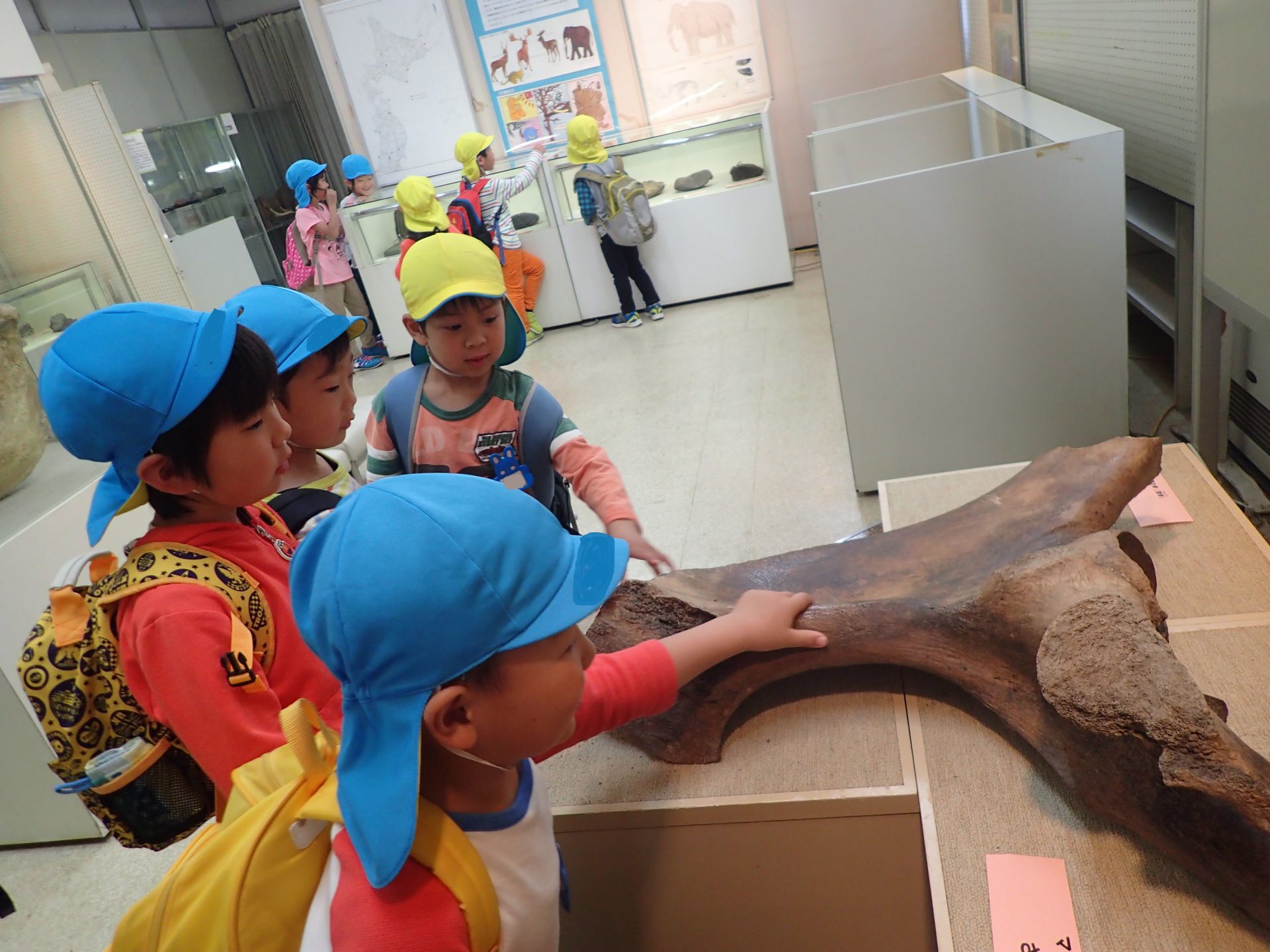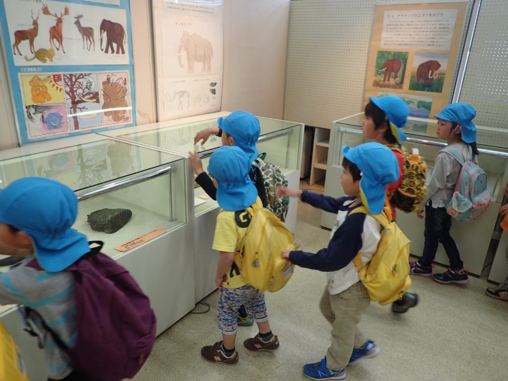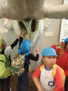持ったり、触ったり、比べるなど子ども達同士話しながらナウマンゾウに夢中になっていました。