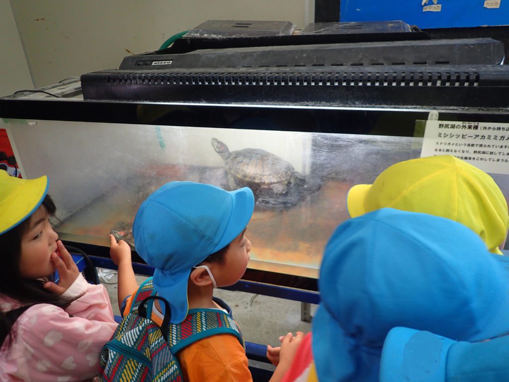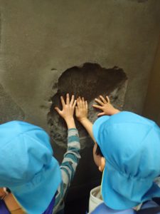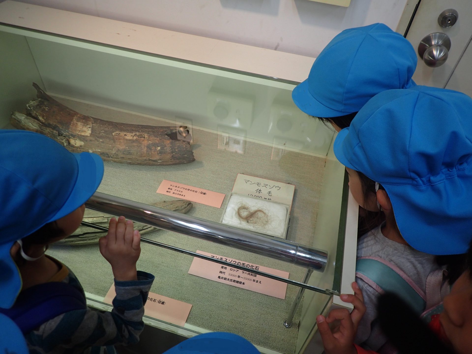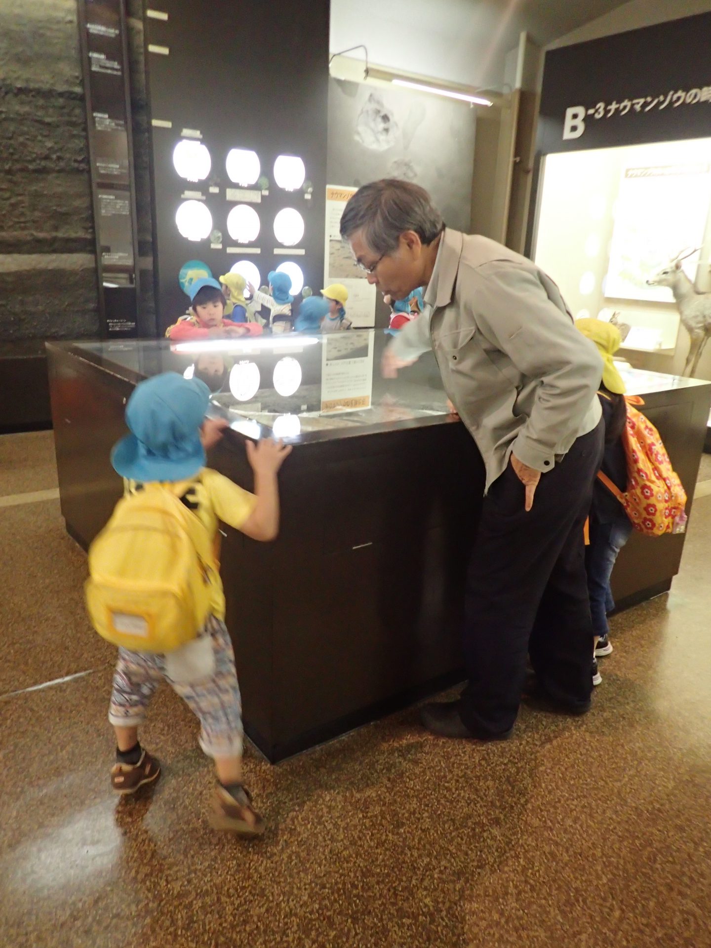 持ったり、触ったり、比べるなど子ども達同士話しながらナウマンゾウに夢中になっていました。