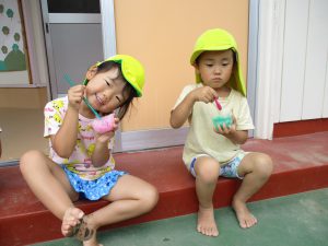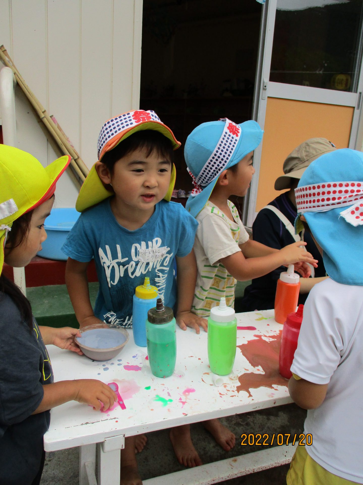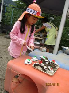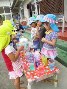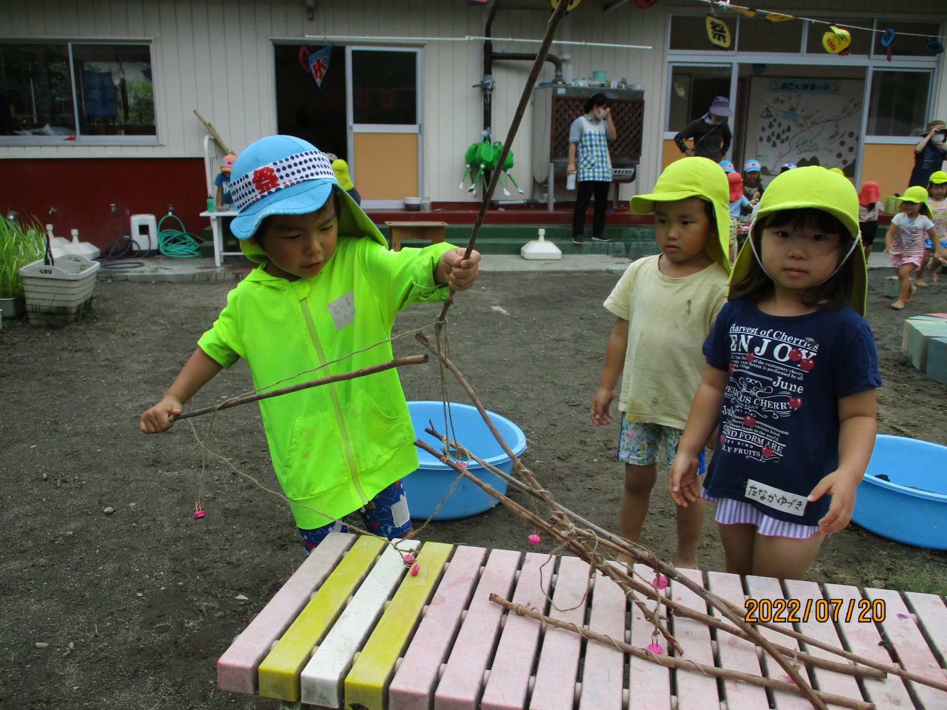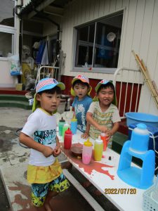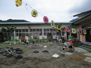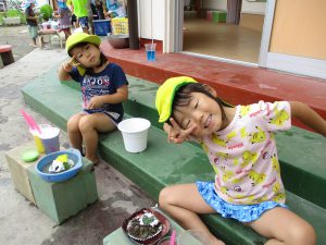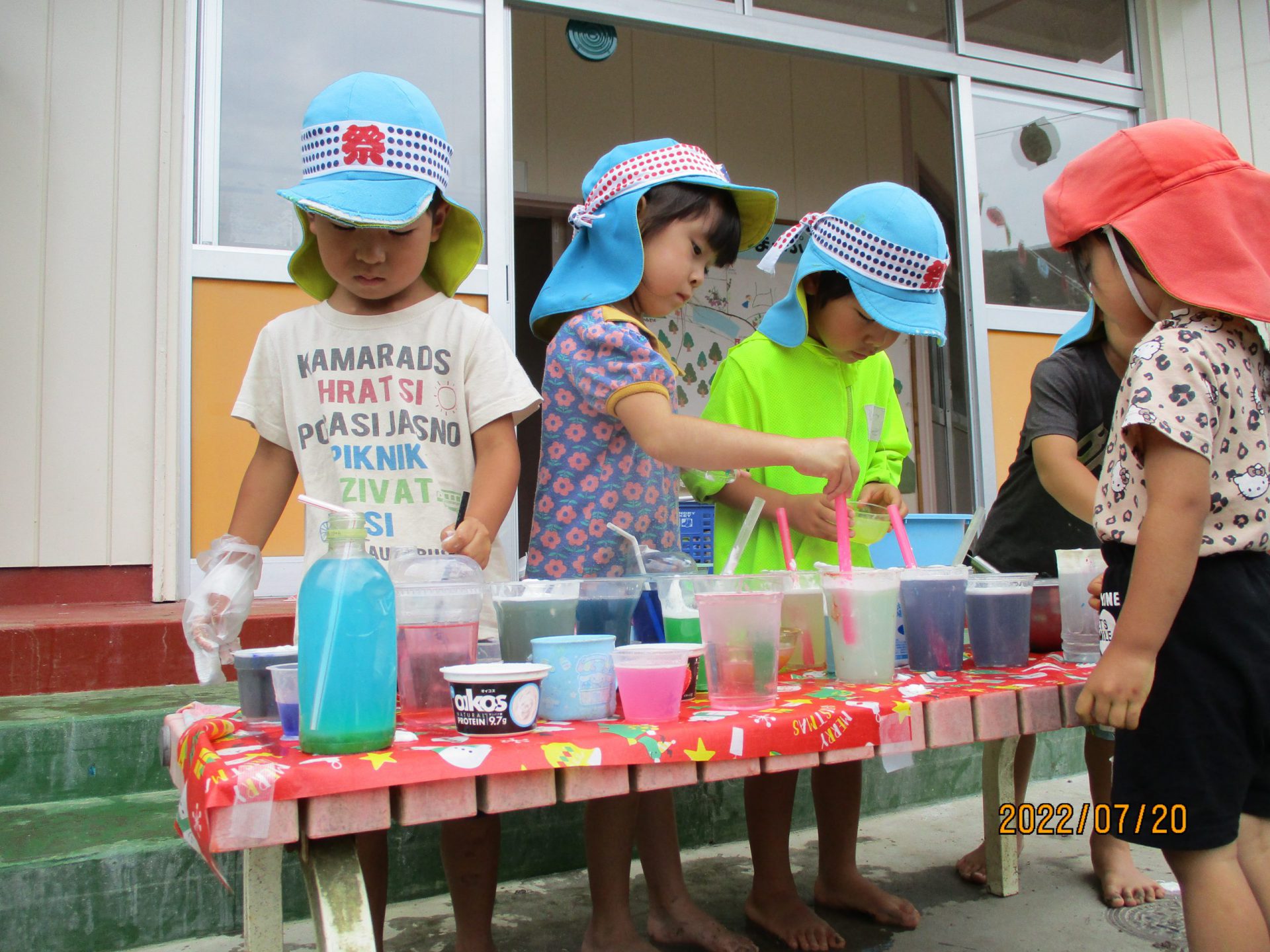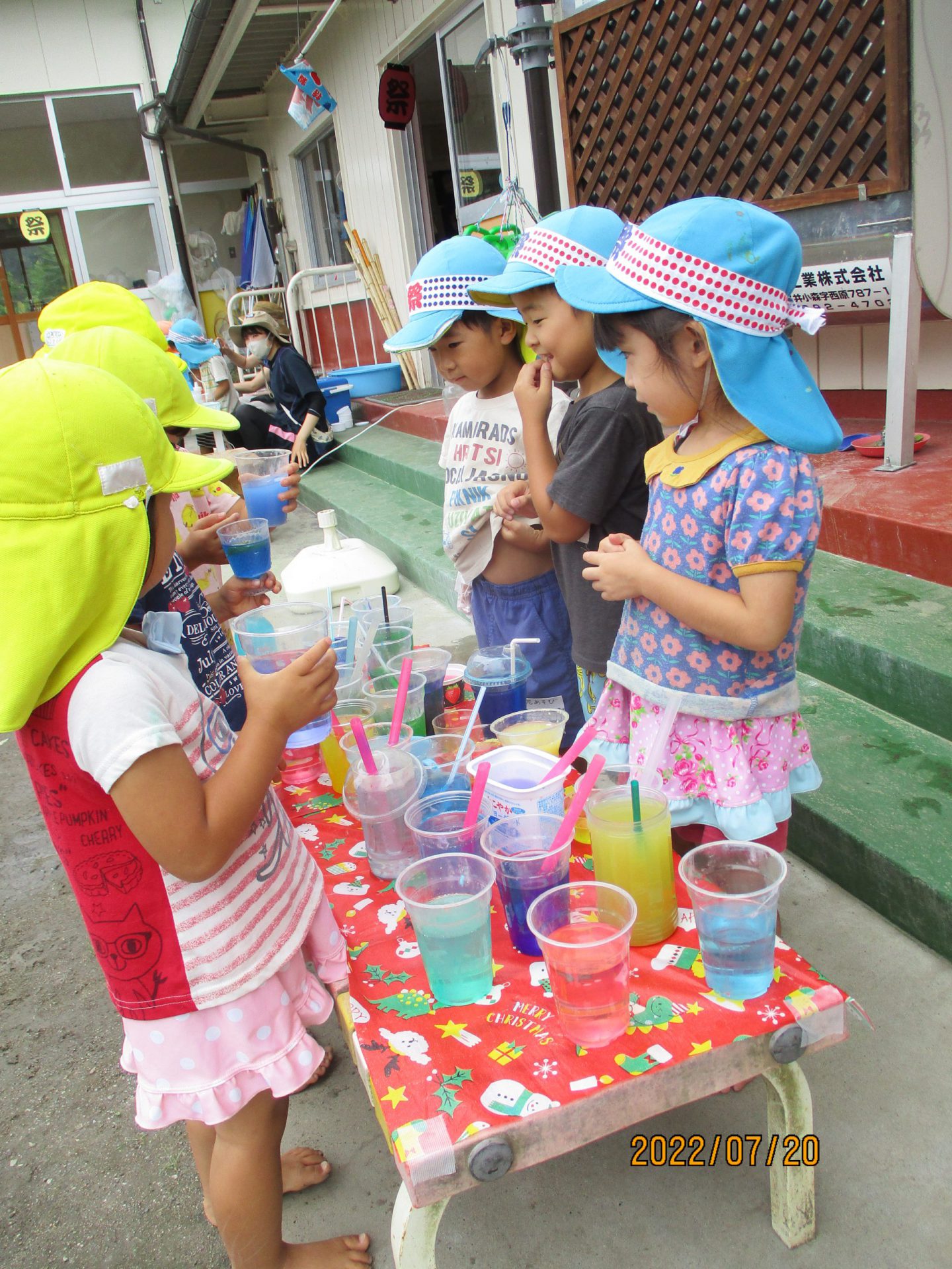 こんな遊び、あんな遊び。毎日毎日出てくるアイデアと試行錯誤を繰り返して、今日の遊び(夏祭り)につながってきています。